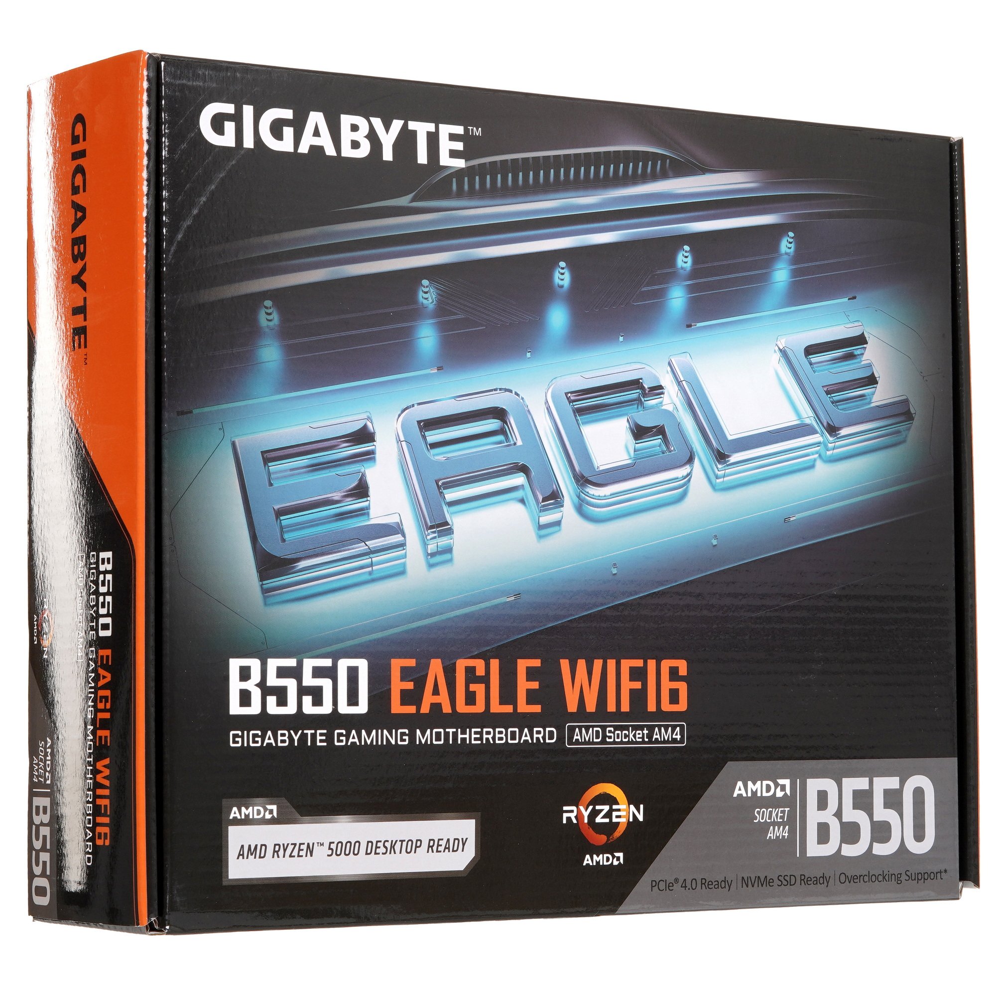 Материнская плата Gigabyte B550 EAGLE WIFI6, AM4, AMD B550, 4xDDR4, 4xSATA, 2xM.2, 1xPCIe 4.0 x16, 4xPCIe 3.0 x16, 1xHDMI, 1x 1Gb LAN, 1xUSB-C 3.2 Gen 1, 1xUSB-A 3.2 Gen 2, 2xUSB-A 3.2 Gen 1, 4xUSB-A 2.0, 3x3.5 мм, 7.1, ATX