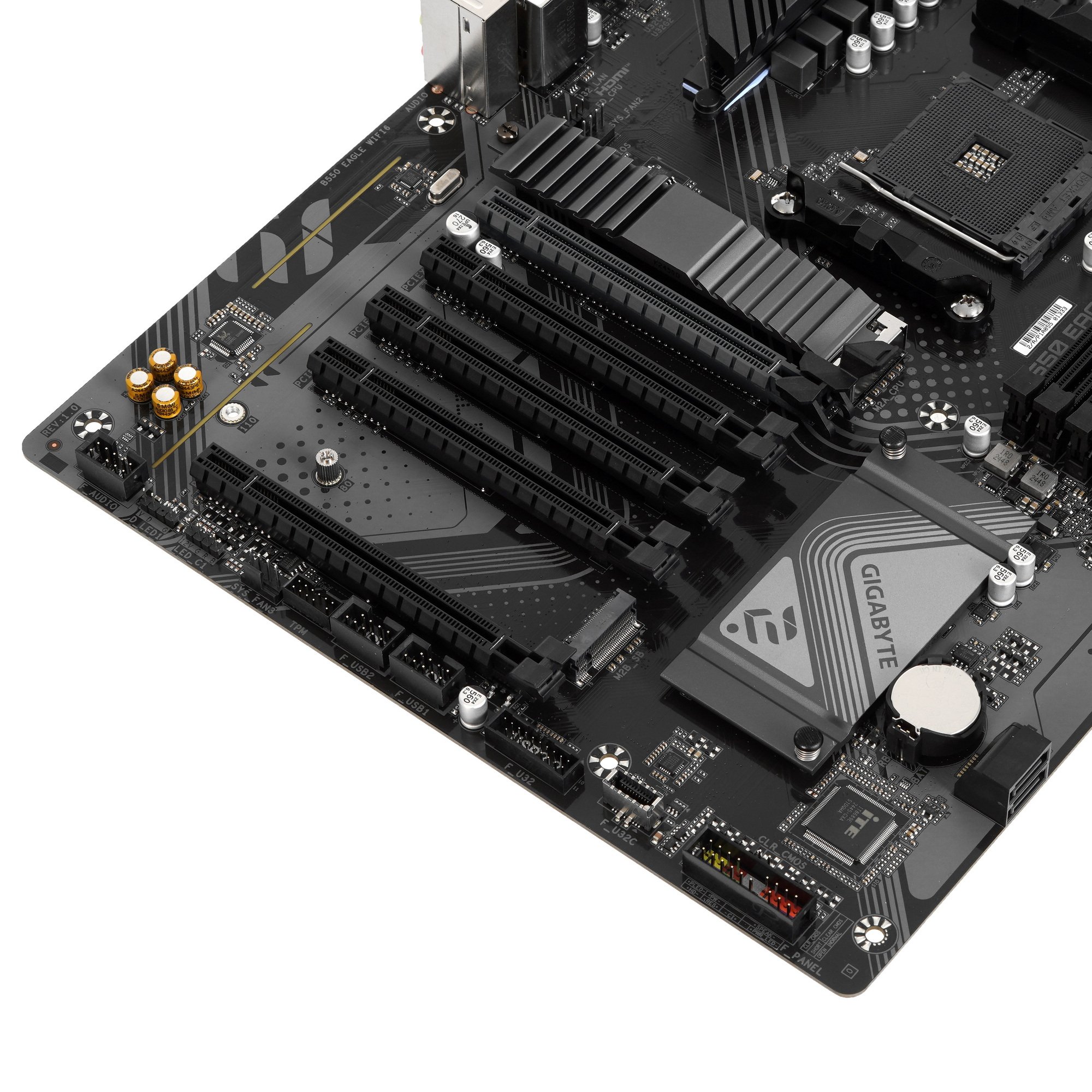 Вы сможете подключить к материнской плате GIGABYTE B550 EAGLE WIFI6 суммарно до 128 ГБ оперативной памяти DDR4 DIMM. Плата располагает 4 слотами для монтажа ОЗУ с поддержкой частоты до 3200 МГц. В ней реализована технология A-XMP для повышения производительности планок памяти.