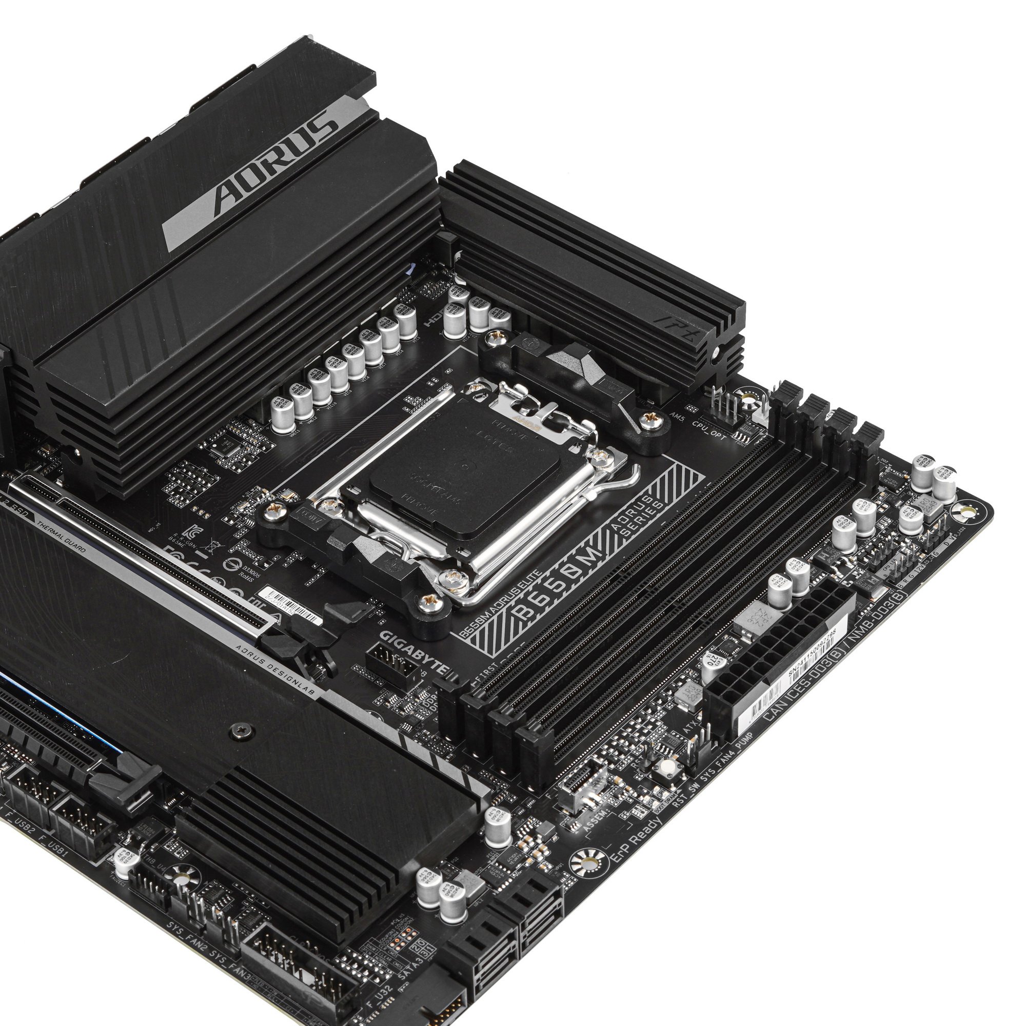 Материнская плата GIGABYTE B650M AORUS ELITE на основе чипсета AMD B650 рассчитана на сборку игрового или универсального компьютера в компактном корпусе. Устройство соответствует форм-фактору Micro-ATX и имеет форму квадрата со сторонами 244 мм. Плата поддерживает процессоры AMD Ryzen 9000, 8000 G, 8000 и 7000. Функции Smart Fan 6 и FAN STOP гарантируют малошумность и температурную стабильность ПК. Кнопка Q-Flash Plus используется для обновления BIOS без установки CPU, модулей ОЗУ и видеоадаптера.