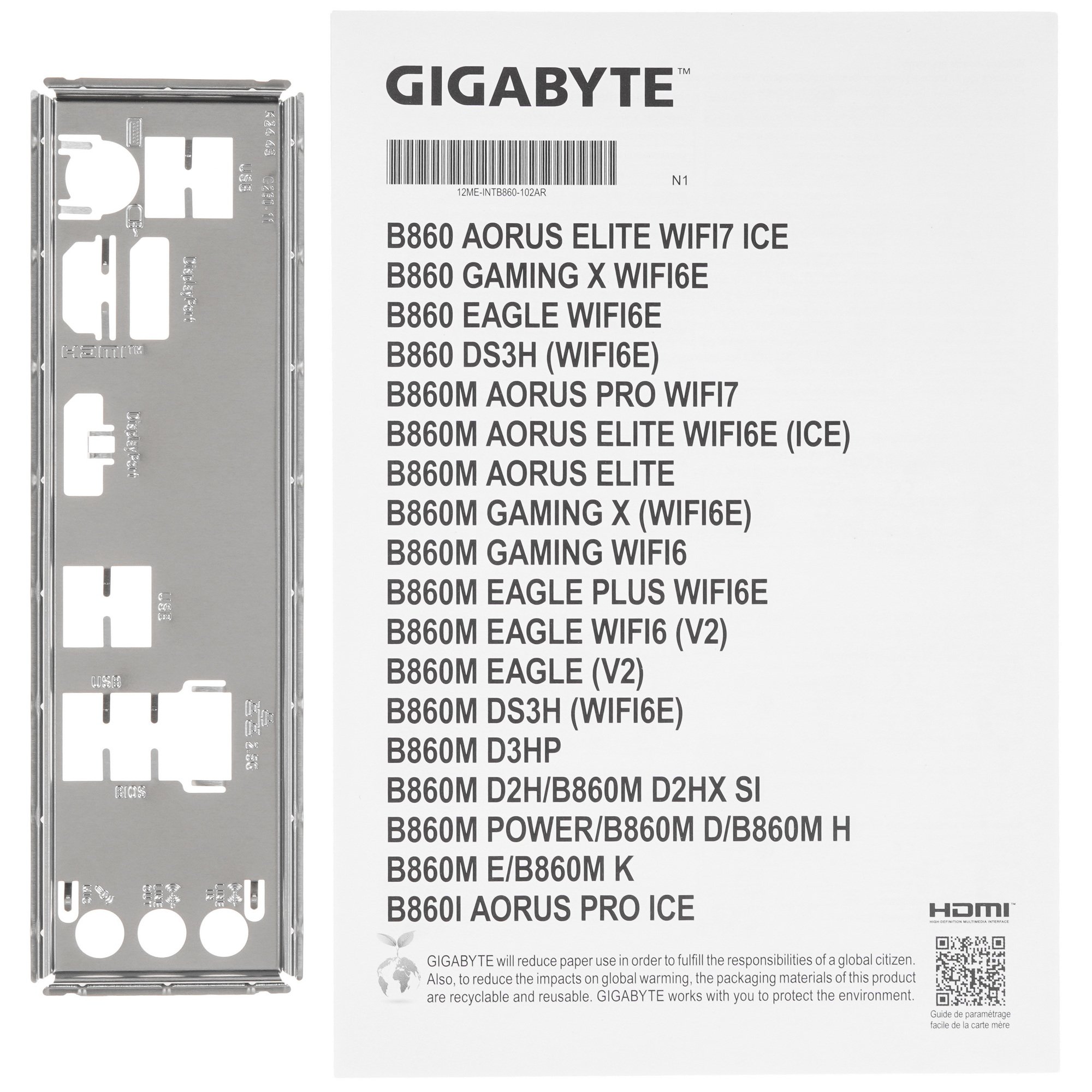 Материнская плата Gigabyte B860M AORUS ELITE WIFI6E ICE, LGA1851, Intel B860, 4xDDR5, 4xSATA, 3xM.2, 1xPCIe 5.0 x16, 1xPCIe 4.0 x4, 1xDP, 2xHDMI, 1x2.5Gb LAN, Wi-Fi 6E, Bluetooth 5.3, 2xUSB-A 10Gbps (Gen2), 4xUSB-A 5Gbps, 4xUSB-A 2.0, 1xUSB-C 20Gbps (USB4