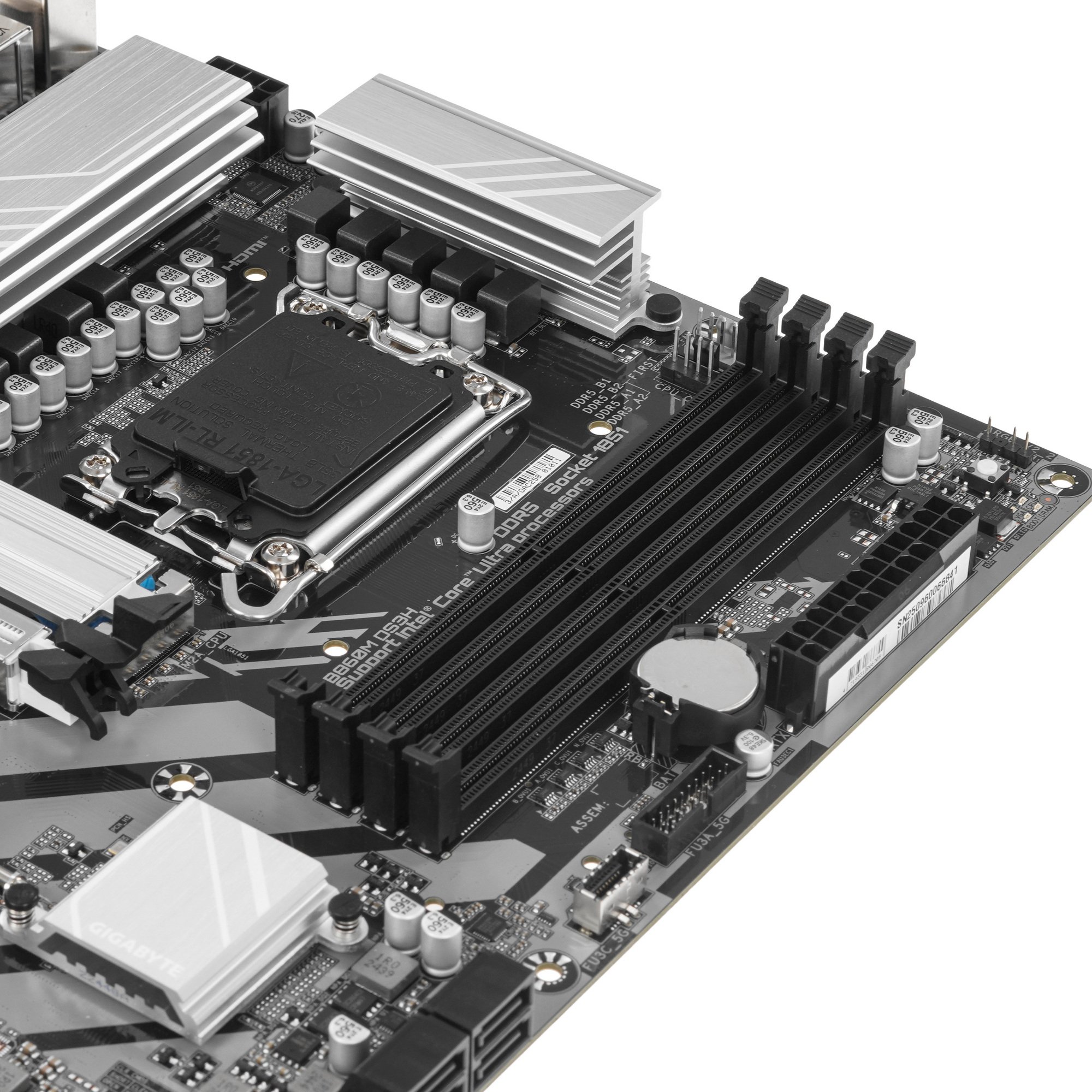Материнская плата GIGABYTE B860M DS3H выпускается как основа для сборки системного блока домашней станции с производительными компонентами. Она оснащается разъемом LGA1851 для подключения центрального процессора и 4 слотами для установки планок оперативной памяти DDR5. Наибольший поддерживаемый объем подключаемого ОЗУ – 256 ГБ. Поддержка функции Intel XMP позволяет установленной памяти работать в режиме разгона с наибольшей возможной в системе частотой.