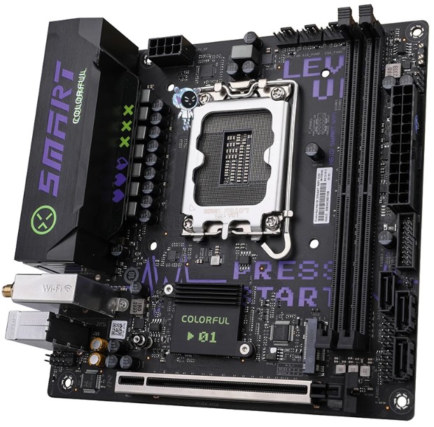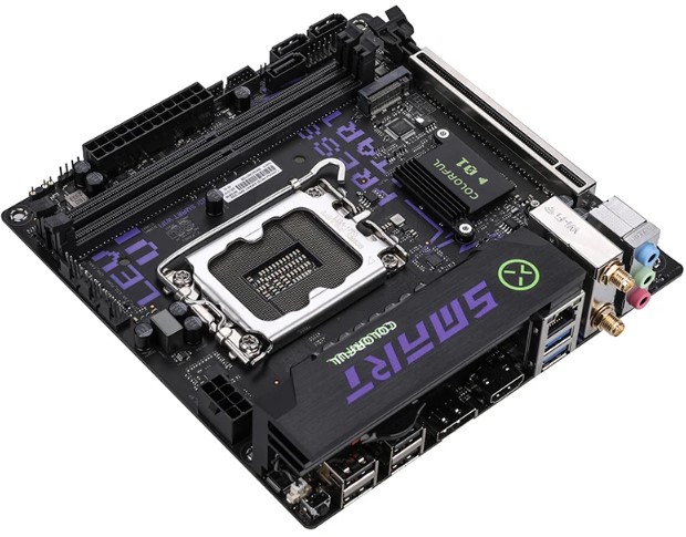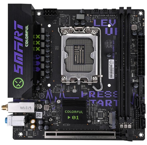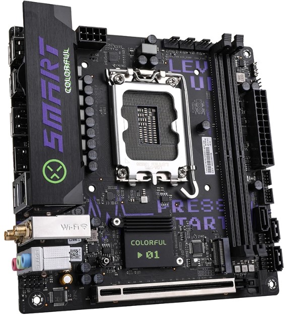 Материнская плата Colorful H610I SMART WIFI V20 – надежное решение для сборки высокопроизводительного ПК. Она принадлежит к серии устройств компактного форм-фактора Mini-ITX. В плате реализованы 2 слота под установку до 64 ГБ оперативной памяти стандарта DDR4, слот расширения PCI-E x16 для графического адаптера, 1 разъем M.2 и 3 слота SATA для накопителей.
