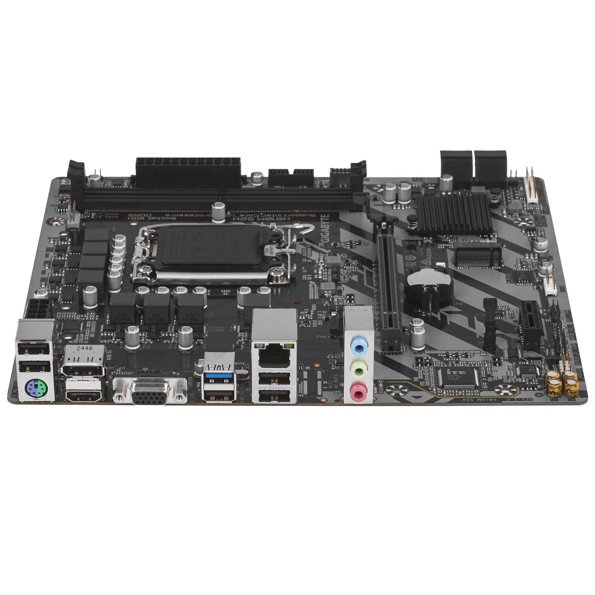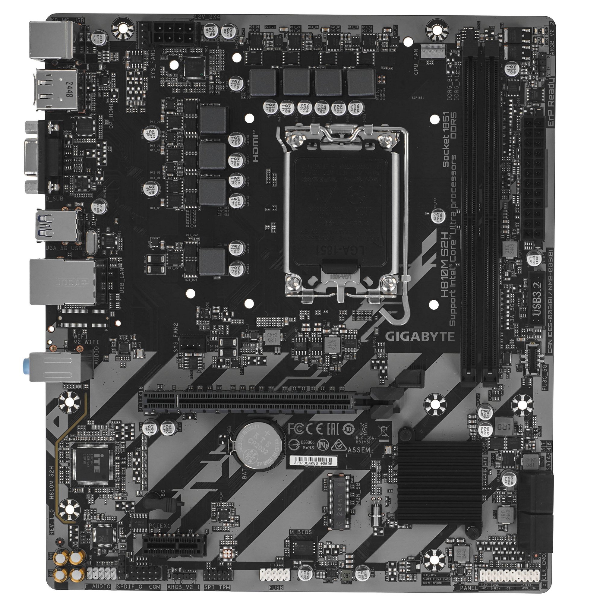 Материнская плата Gigabyte H810M S2H, LGA1851, Intel H810, 2xDDR5, 4xSATA, 1xM.2, 1xPCIe 4.0 x16, 1xPCIe 3.0 x1, 1xDP, 1xHDMI, 1xD-Sub, 1x1Gb LAN, 1xUSB-C 5Gbps, 4xUSB-A 5Gbps, 7xUSB-A 2.0, 3x3.5 мм, 7.1, mATX