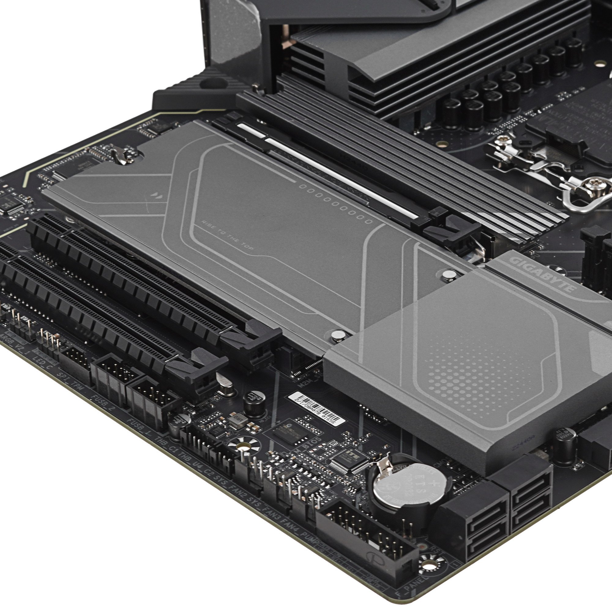 Плата GIGABYTE Z890 EAGLE оснащена 3 слотами PCI-E x16. 4 разъема M.2 поддерживают скоростные твердотельные накопители NVMe. Один из них является универсальным: он подходит для установки SSD с интерфейсом SATA. 4 порта SATA с поддержкой RAID 0, 1 ориентированы на создание массивов из HDD.