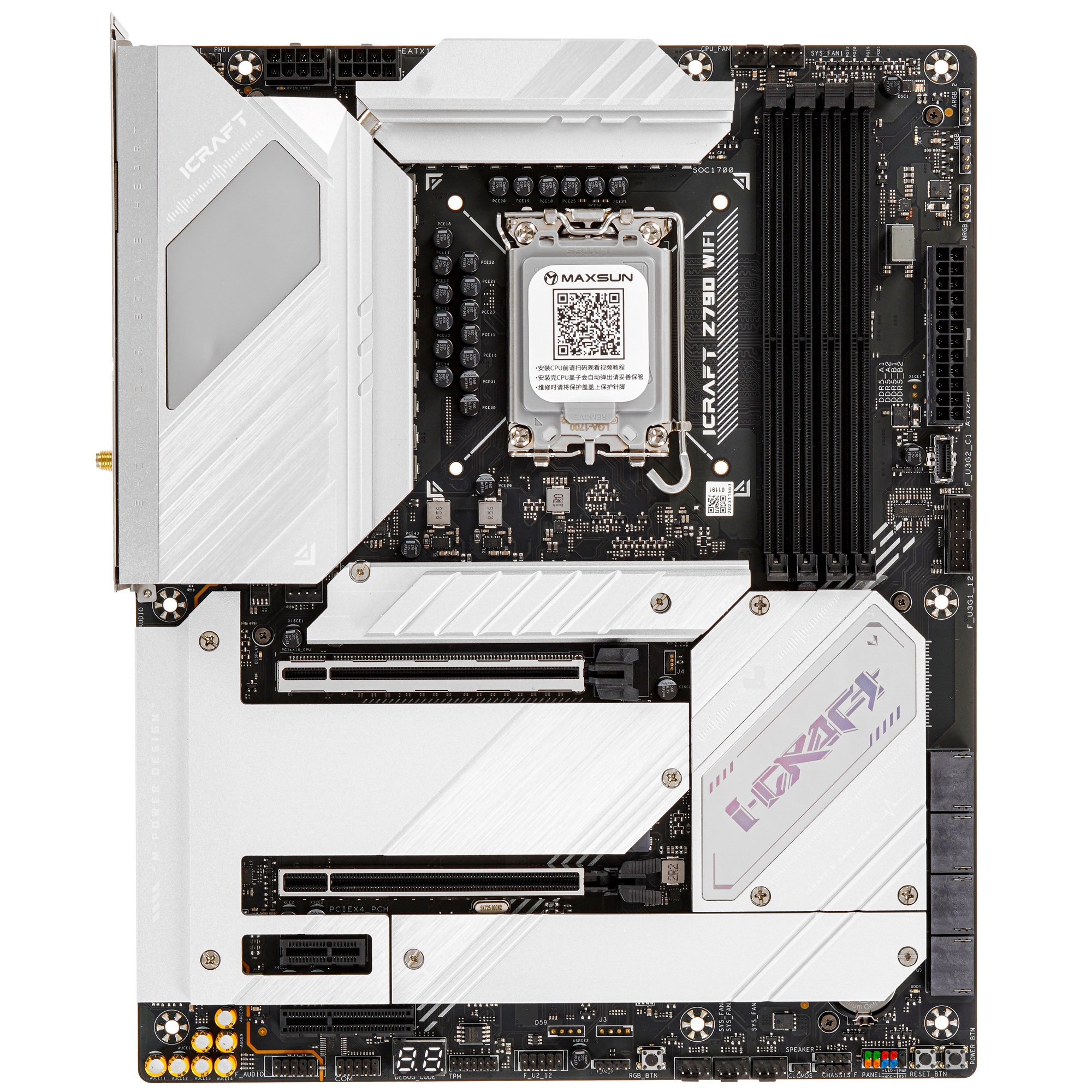 Материнская плата MaxSun iCraft Z790 WIFI станет надежным решением для игровой станции. Она выполнена в форм-факторе ATX и содержит в своей основе чипсет Intel Z790 с процессорным разъемом LGA 1700. В оснащение платы входят 4 слота под размещение до 192 ГБ оперативной памяти, 4 разъема SATAIII и 4 разъема M.2 под установку накопителей.