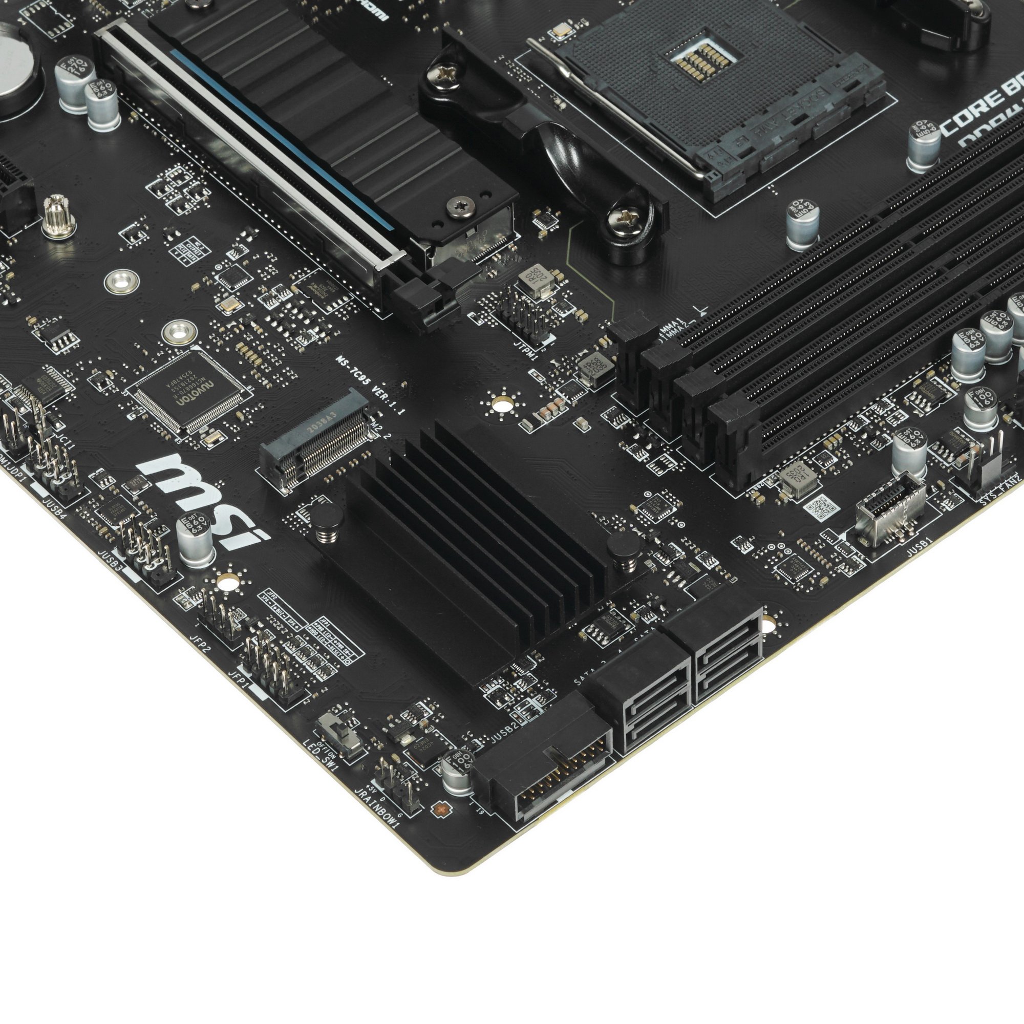 Основой MSI B550M PRO-VDH является чипсет AMD B550 и сокет AM4, совместимый с различными процессорами AMD. Важной особенностью модели является 1 шина PCI-E 4.0 x16, благодаря чему вы сможете использовать в своей работе дискретную видеокарту. Кроме того, за счет 4 DIMM-слотов возможно использование до 128 ГБ временной памяти. Для хранения больших массивов данных может использоваться до 4 дисков SATA, а также 2 скоростных дисков M.2.