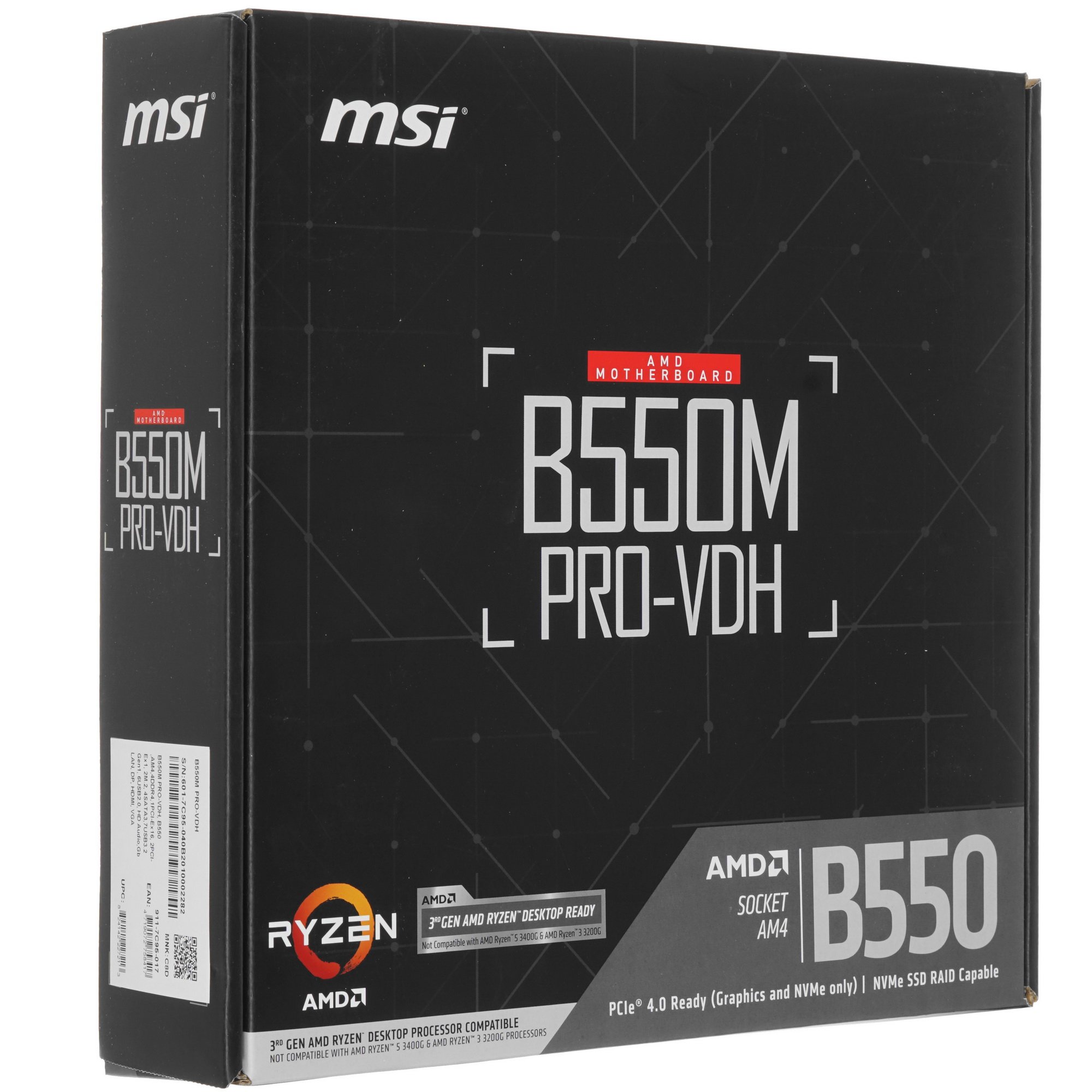 Материнская плата MSI B550M PRO-VDH WIFI, AM4, AMD B550, 4xDDR4, 4xSATA, 2xM.2, 1xPCIe 4.0 x16, 2xPCIe x1, 1xDisplayPort, 1xHDMI, 1xVGA, 1x 1Gb LAN, 2xUSB 2.0, 4xUSB 3.2 Gen 1, 3x3.5 мм, 7.1, mATX