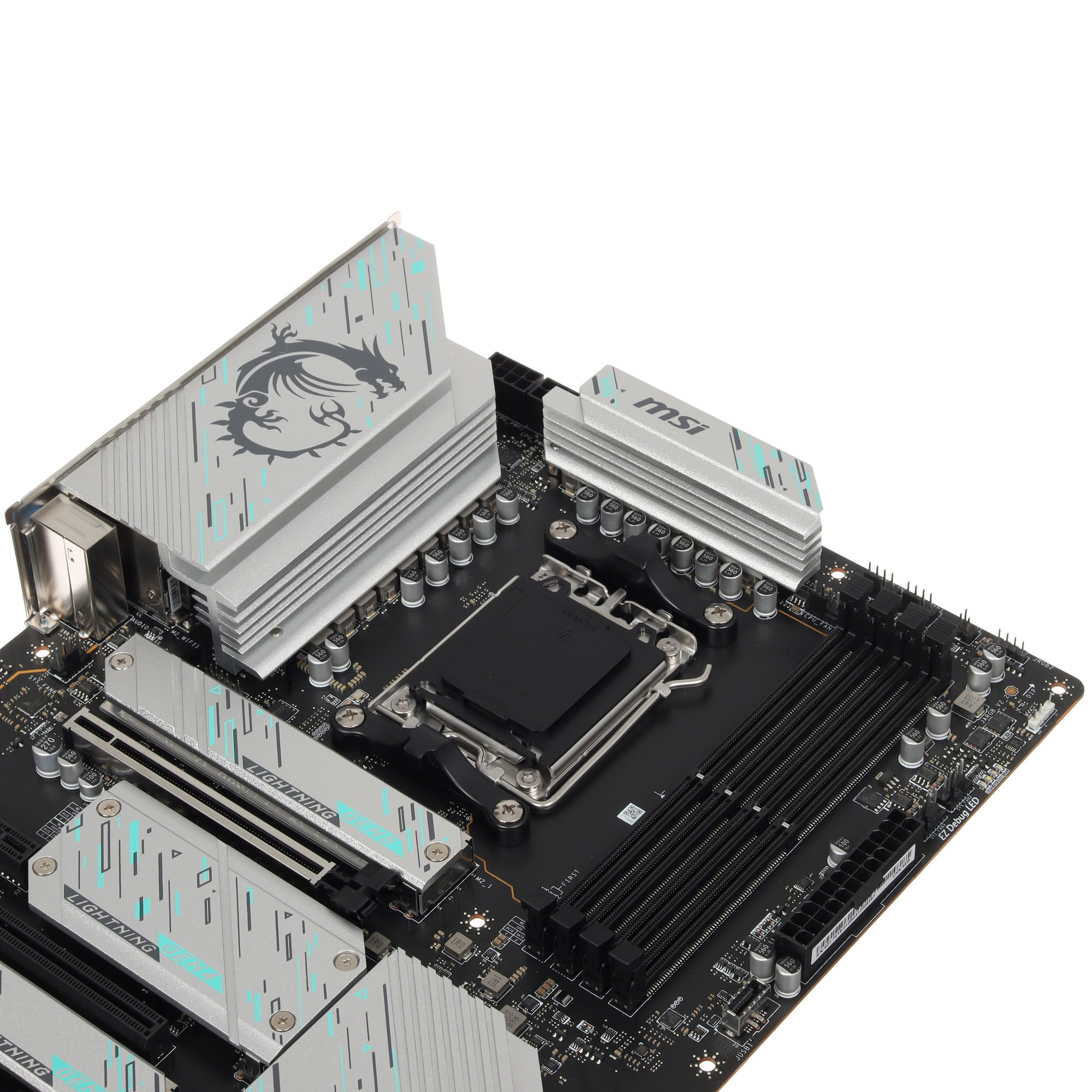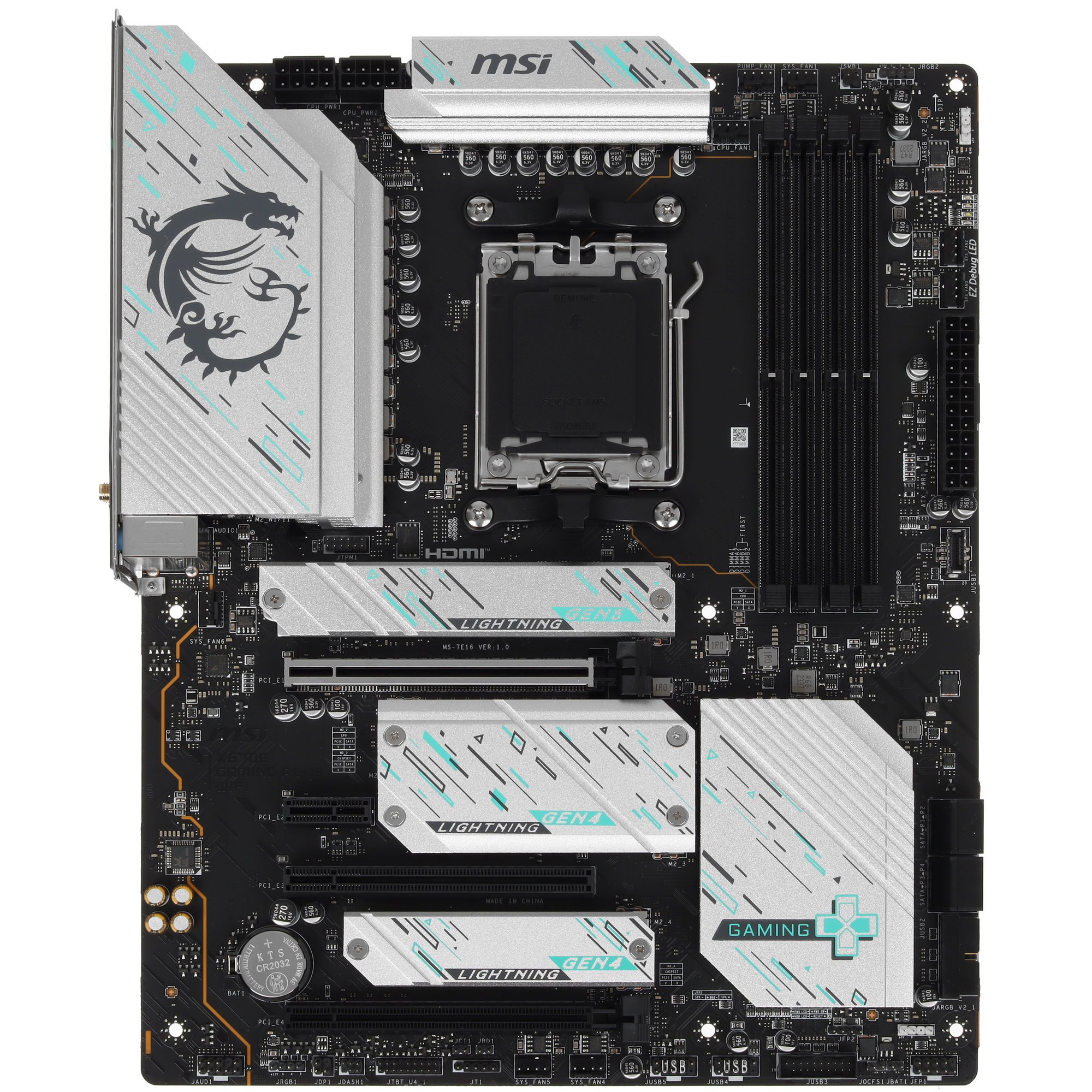 Плата MSI X670E GAMING PLUS WIFI оснащена 4 слотами расширения – 3 PCIe x16 и PCIe x1. 4 разъема M.2 совместимы со скоростными твердотельными накопителями NVMe. 4 слота DDR5 рассчитаны на установку до 256 ГБ оперативной памяти. Частота ОЗУ в разгоне может достигать 7800 МГц.