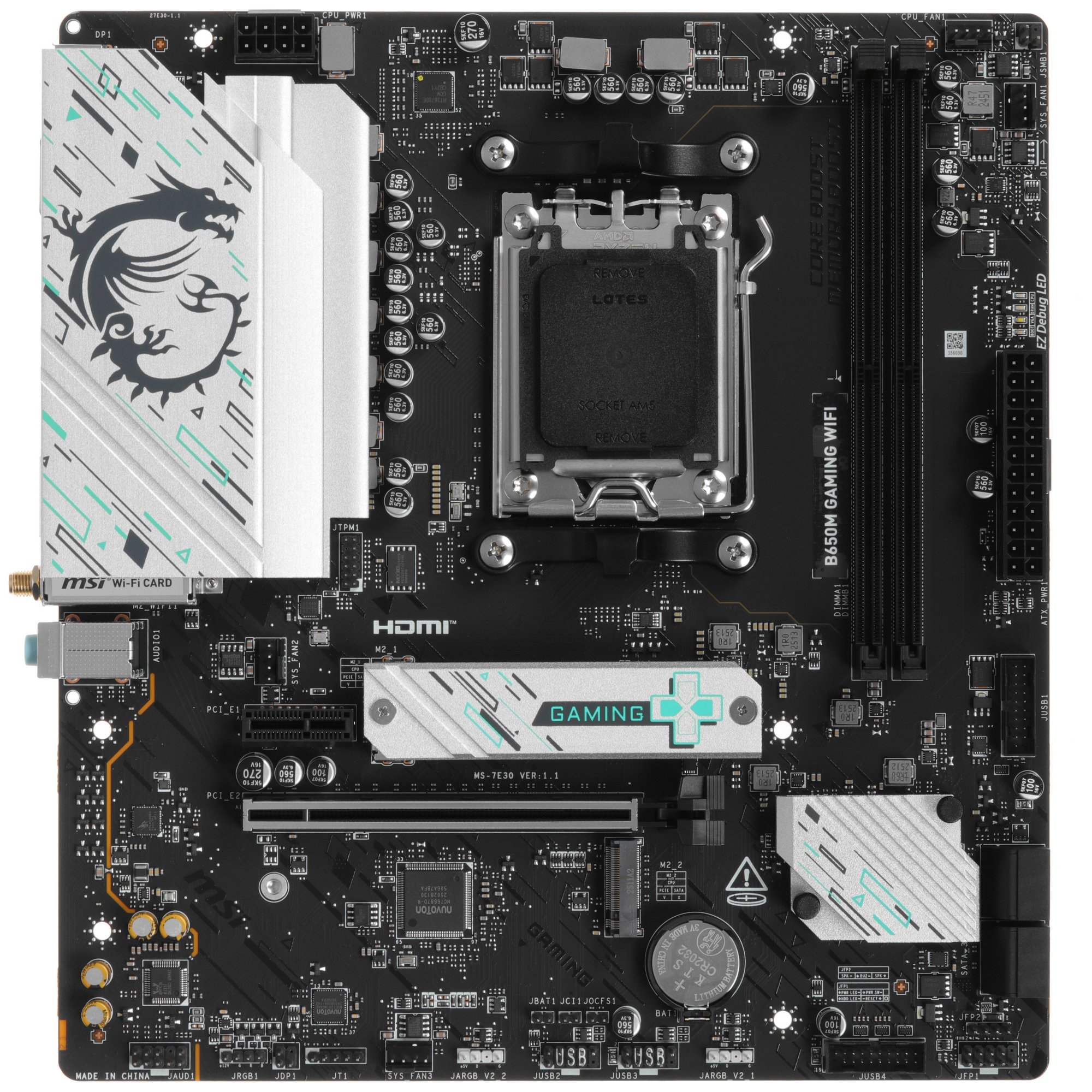 Материнская плата MSI B650M GAMING WIFI, AM5, AMD B650, 2xDDR5, 4xSATA, 2xM.2, 1xPCIe 4.0 x16, 1xPCIe 3.0 x1, 1xDP, 1xHDMI, 1x2.5Gb LAN, Wi-Fi 6E, Bluetooth 5.3, 1xUSB-C 5Gbps, 3xUSB-A 5Gbps, 2xUSB-A 2.0, 1xS/PDIF, 5x3.5 мм, 7.1, mATX
