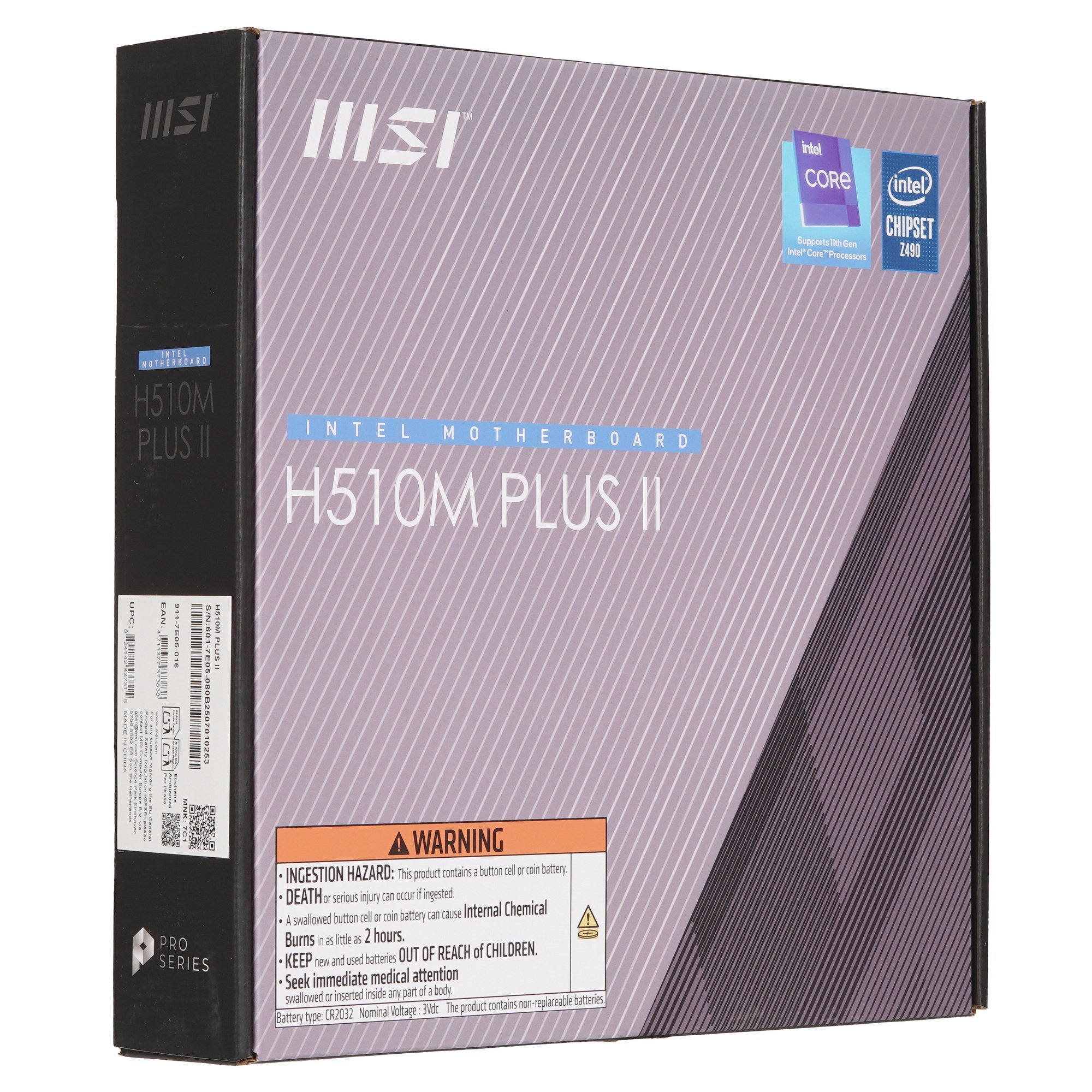 Материнская плата MSI H510M PLUS II, LGA1200, Intel H510, 2xDDR4, 4xSATA, 1xM.2, 1xPCIe 3.0 x16, 1xPCIe 3.0 x1, 1xVGA, 1xHDMI, 1x1Gb LAN, 2xUSB-A 5Gbps, 4xUSB-A 2.0, 3x3.5 мм, 7.1, mATX