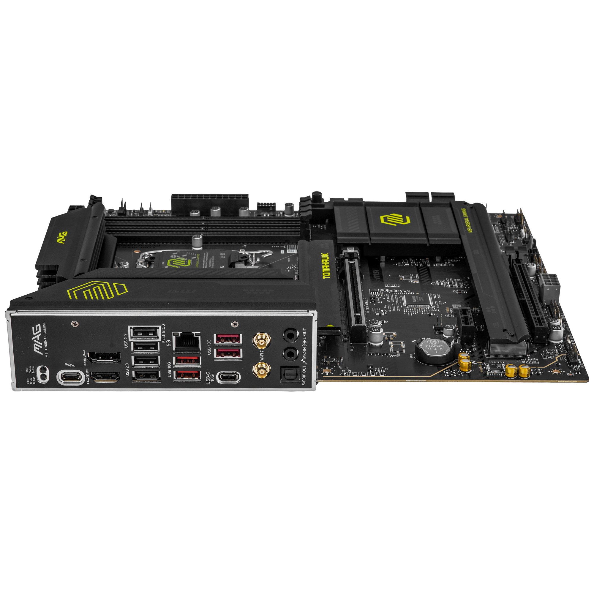Материнская плата MSI MAG B860 TOMAHAWK WIFI, LGA 1851, Intel B860, 4xDDR5, 4xSATA, 3xM.2, 1xPCIe 4.0 x4, 1xPCIe 5.0 x16, 1xDP, 1xHDMI, 1xUSB-C, 1x 5Gb LAN, 4xUSB-A 2.0, 4xUSB-A 3.2 Gen 2, 7.1, 2x3.5 мм, TOSLINK, ATX