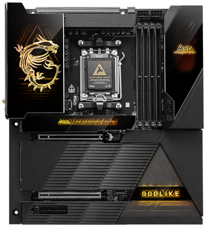 Материнская плата MSI MEG X870E GODLIKE, AM5, AMD X870E, 4xDDR5, 4xSATA, 7xM.2, 2xPCIe 5.0 x16, 1xPCIe 4.0 x4, 2xUSB-C DP, 1x10G LAN, 1x5Gb LAN, Wi-Fi 7, Bluetooth 5.4, 2xUSB-C 40Gbps, 5xUSB-C 10Gbps, 1xUSB-C 20Gbps, 8xUSB-A 10Gbps, 4xUSB-A 5Gbps, 4xUSB-A