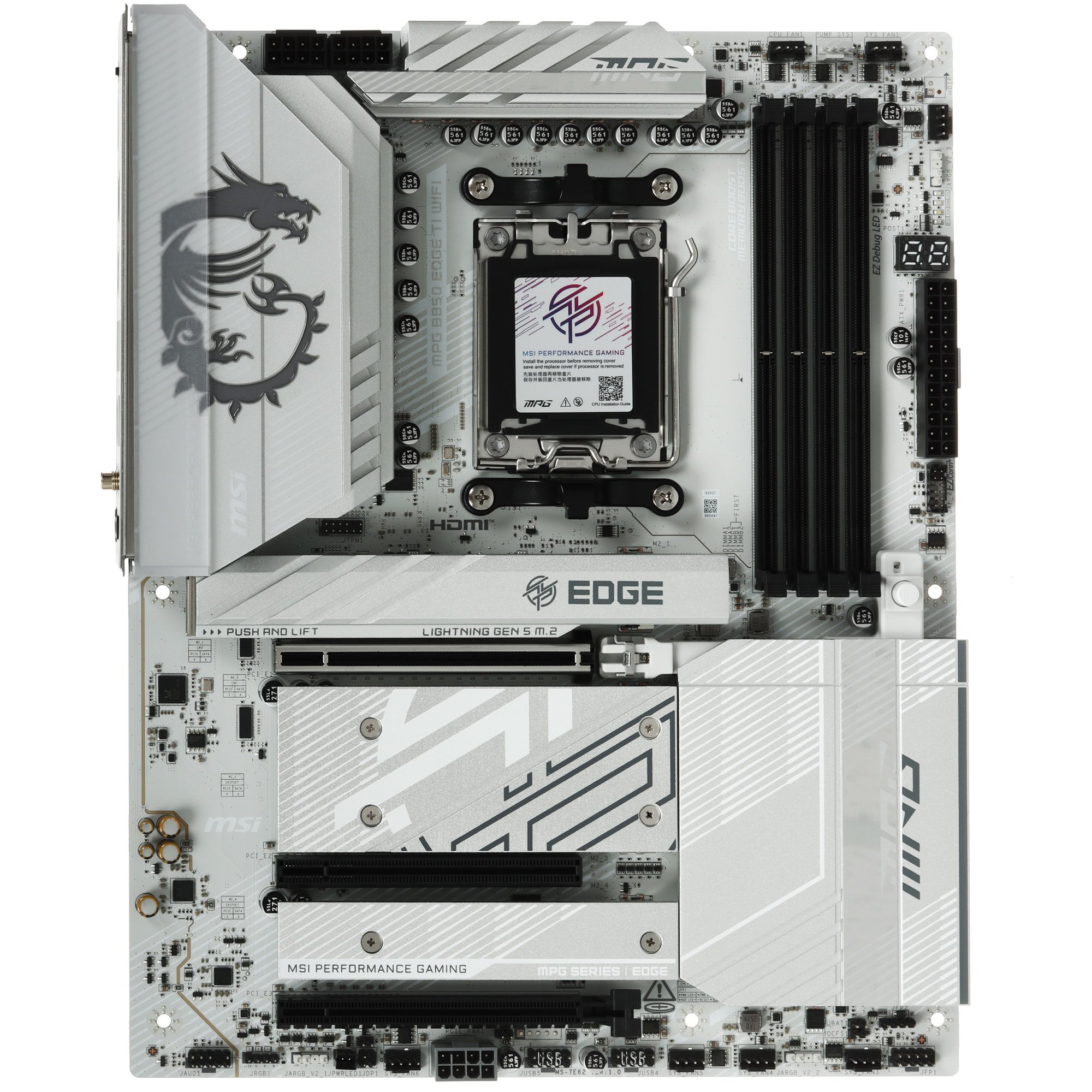 Материнская плата MSI MPG B850 EDGE TI WIFI, AM5, AMD B850, 4xDDR5, 4xSATA, 4xM.2, 1xPCIe 5.0 x16, 1xPCIe 4.0 x4, 1xPCIe 3.0 x1, 1xHDMI, 1x5Gb LAN, Wi-Fi 7, Bluetooth 5.4, 3xUSB-C 10Gbps, 1xUSB-C 20Gbps, 5xUSB-A 10Gbps, 4xUSB-A 2.0, 1xS/PDIF, 2x3.5 мм, 7.