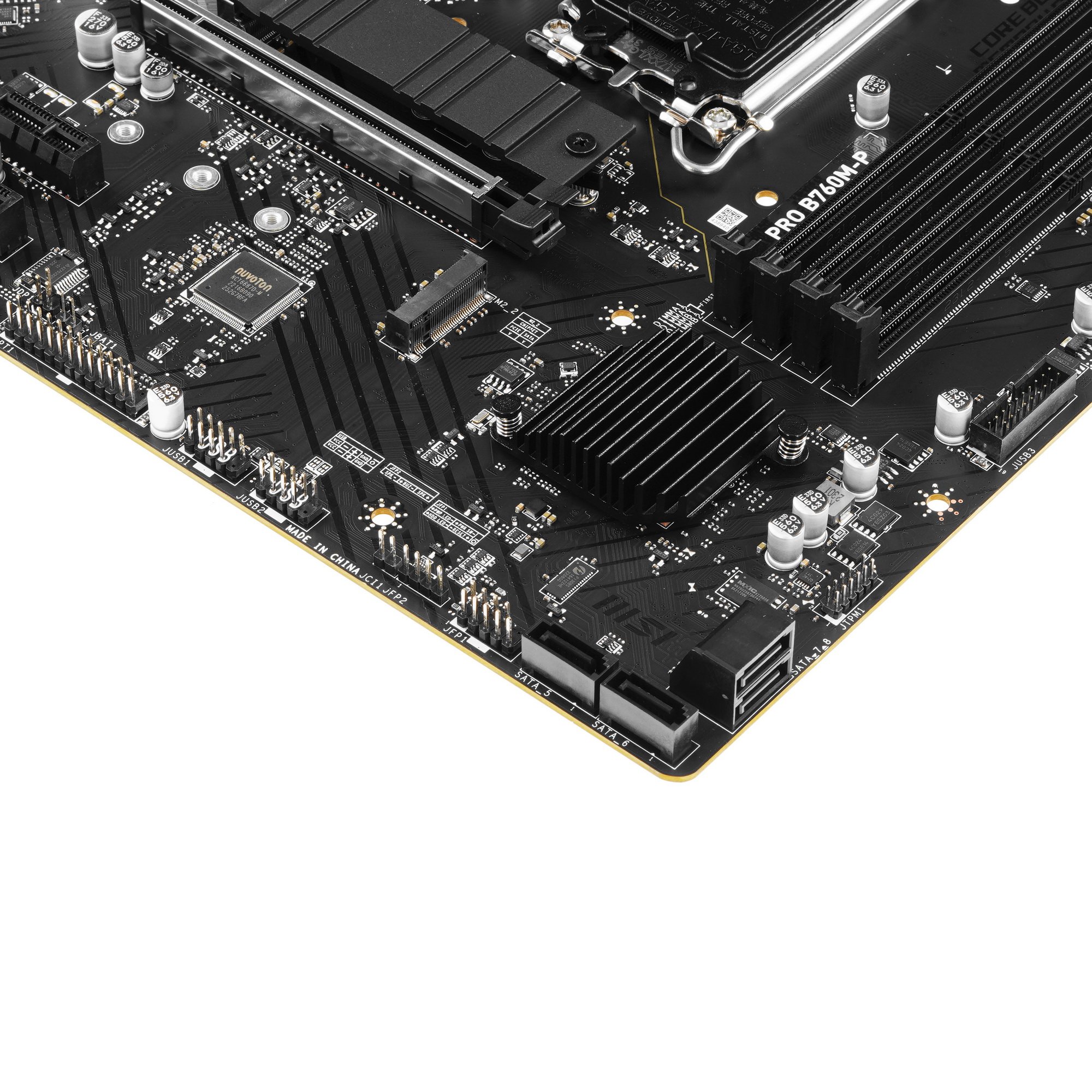 Материнская плата MSI PRO B760M-P совместима с процессорами Intel 12/13/14-го поколения с ядрами Alder Lake и Raptor Lake. Поддерживается память DDR5. Объем ОЗУ может достигать внушительных 256 ГБ. Память можно разгонять до 6800 МГц. Оба разъема M.2 подходят для размещения высокоскоростных SSD NVMe. В один из слотов M.2 можно установить SSD SATA. Крупные дисковые массивы из жестких дисков удобно организовывать благодаря 4 портам SATA. Плата поддерживает уровни RAID 0, 1, 5 и 10. Пара слотов PCI-E x1 может пригодиться для установки контроллеров и других плат расширения. Слот PCI-E x16 рассчитан на размещение производительного видеоадаптера или другого устройства PCI-E.