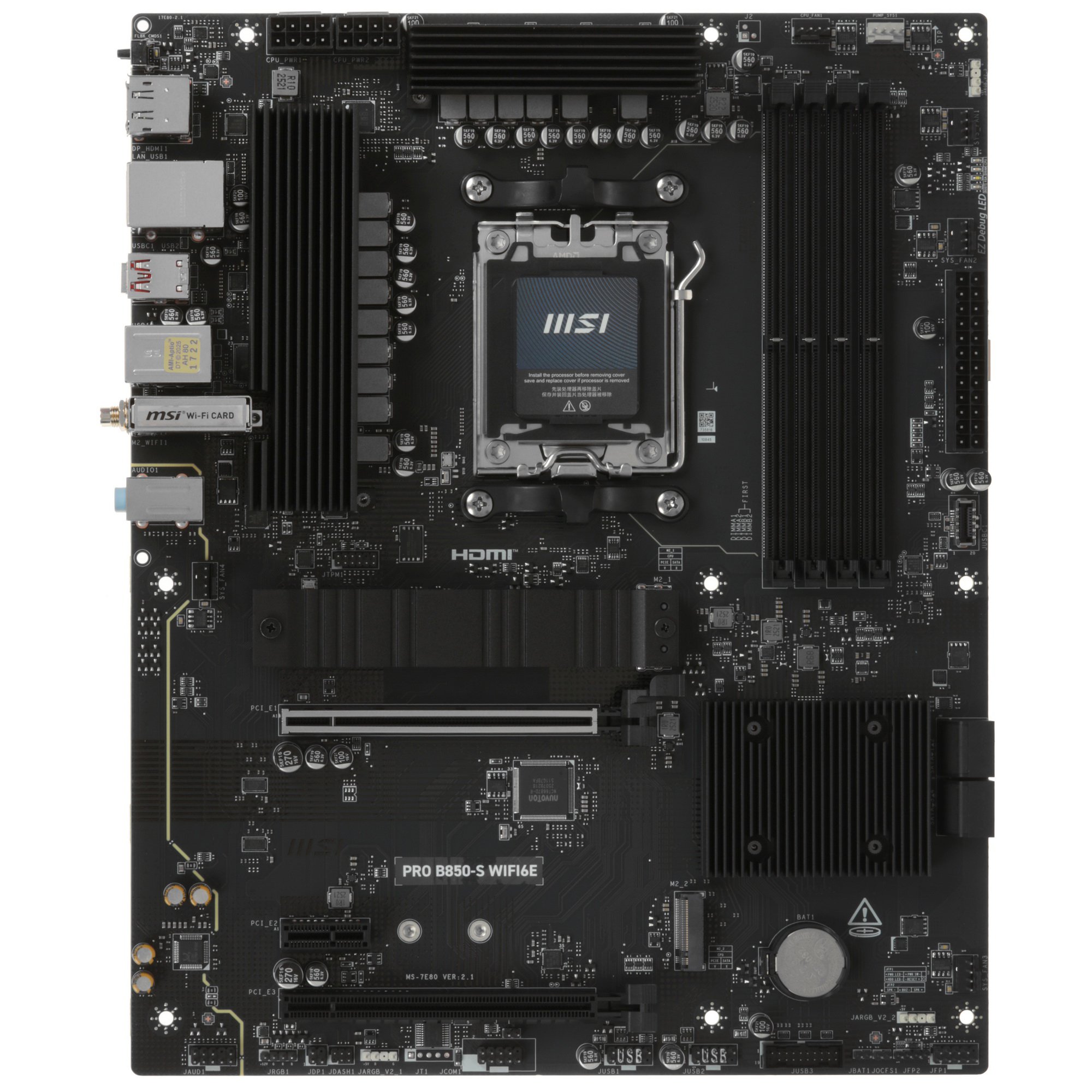 MSI PRO B850-S WIFI6E отличается лаконичным дизайном и гармоничной цветовой гаммой, идеально подходящей для чёрных ПК. Плата оснащена множеством эксклюзивных функций MSI: Wi-Fi 6E с антенной EZ, 2.5G LAN и PCIe 5.0 M.2 с M.2 Shield Frozr, а также поддерживает процессоры AMD Ryzen серии 9000.