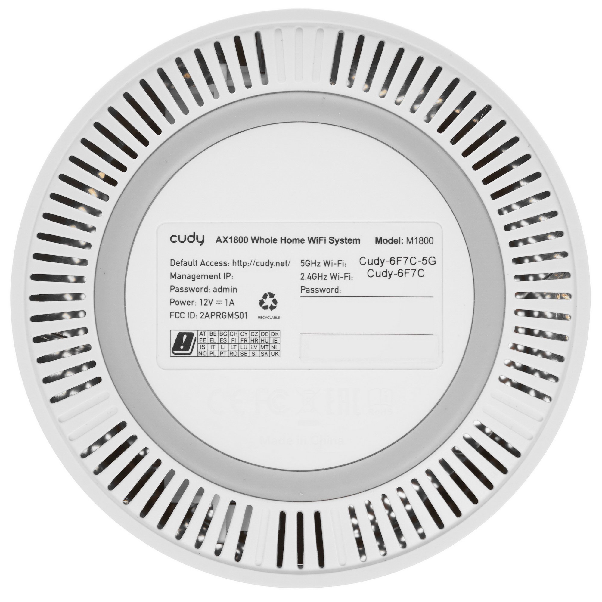 Бесшовный Mesh роутер Cudy M1800 (M1800 2-PACK) AX1800 10/100/1000BASE-TX/Wi-Fi белый (упак.:2шт)