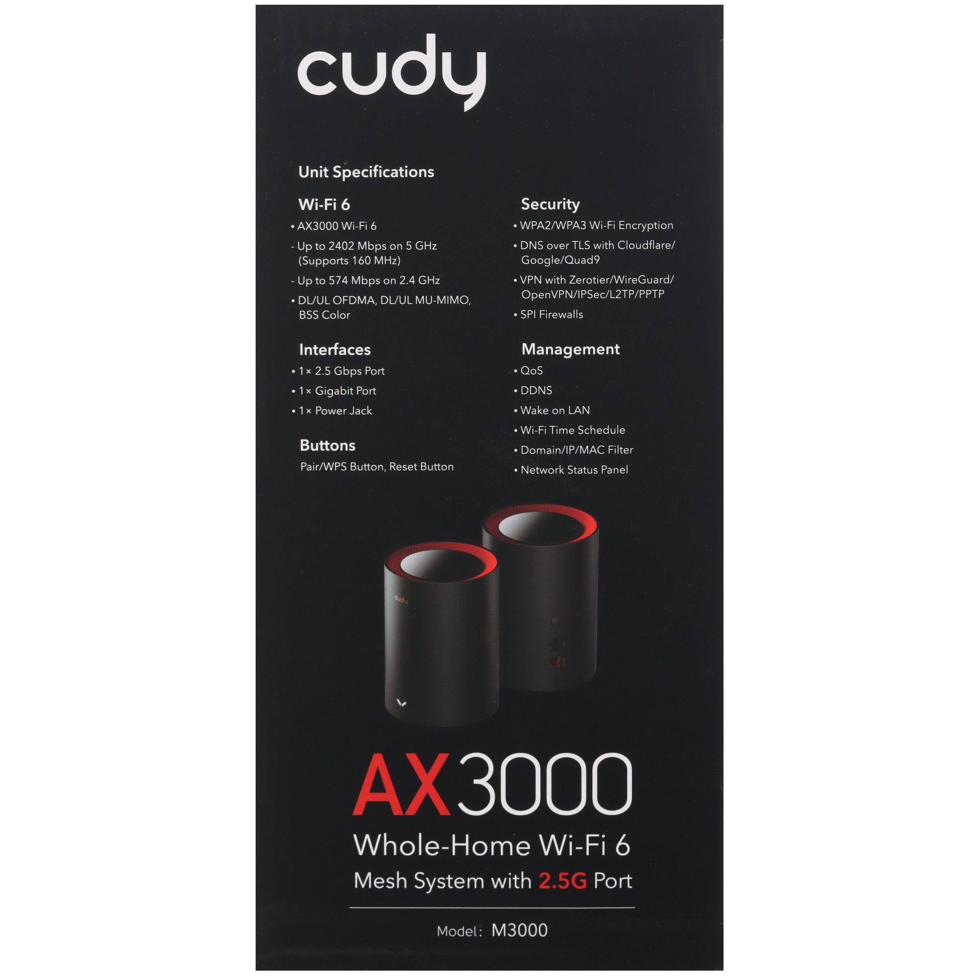 Бесшовный Mesh роутер Cudy M3000(2-PACK) AX3000 10/100/1000/2500BASE-T, белый (упак.:2шт)