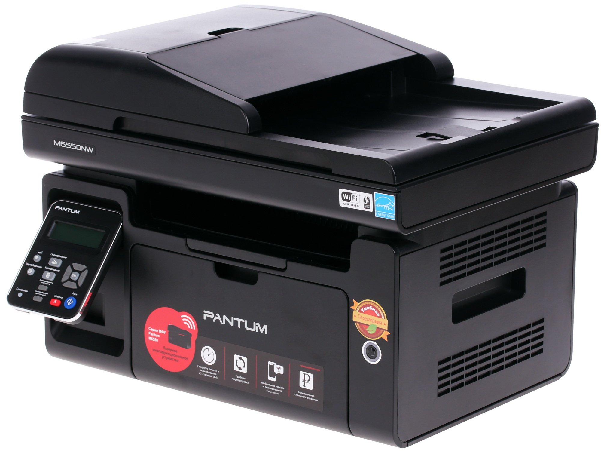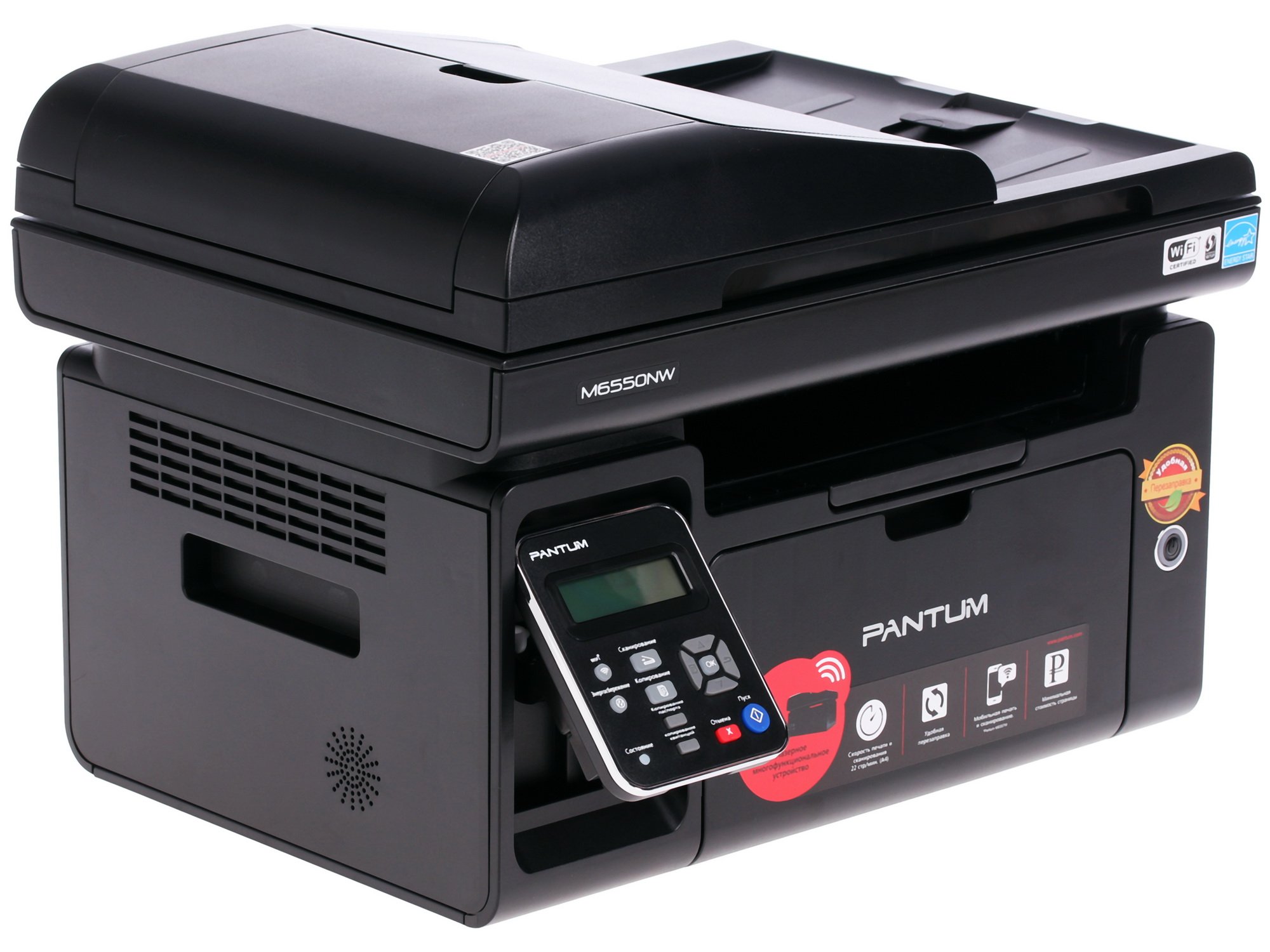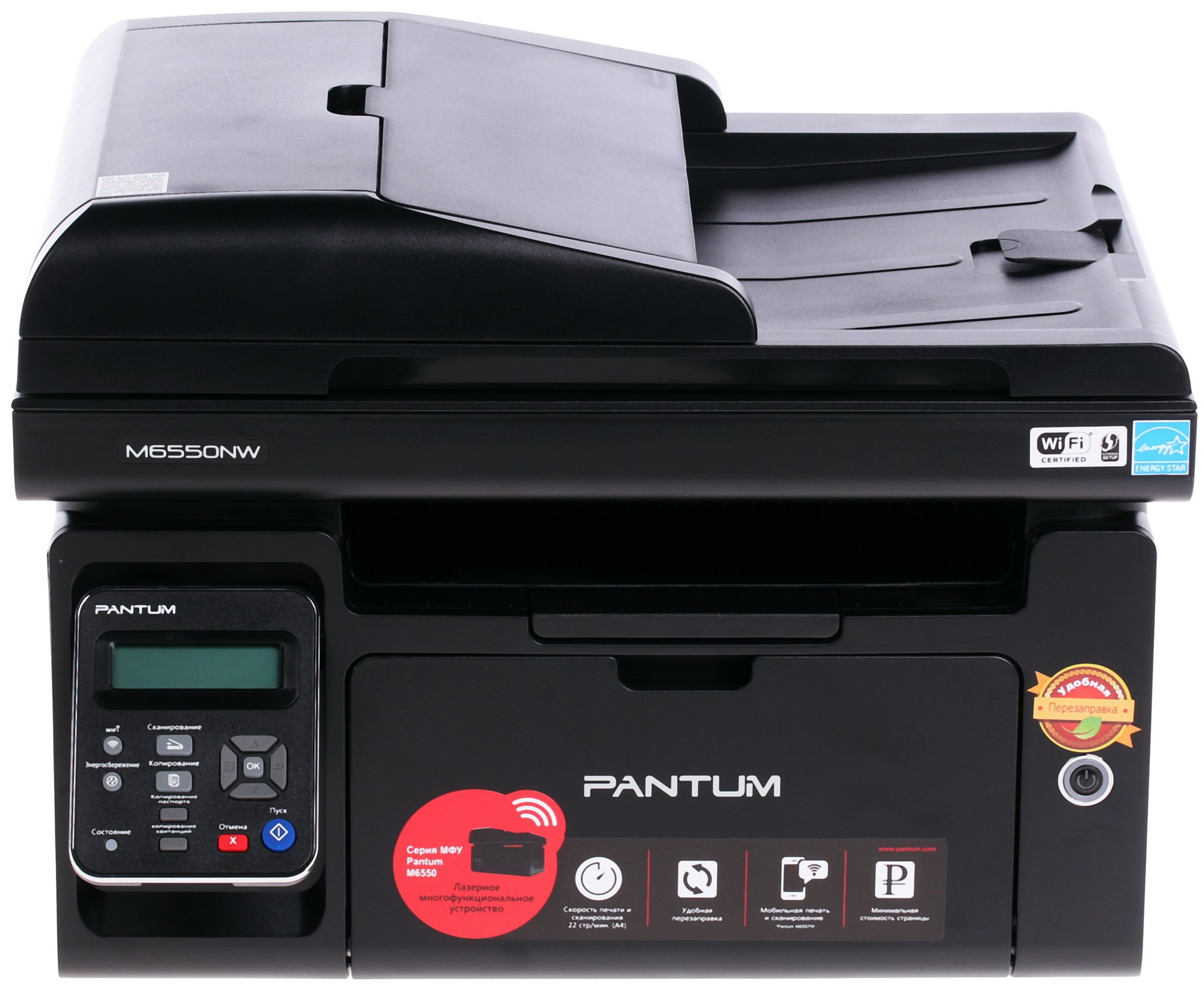 МФУ лазерное Pantum M6550NW станет идеальным решением для домашнего кабинета или офиса небольшого предприятия. Представленное МФУ разработано и произведено именитой компанией Pantum с применением передовых технологией. Приобретя аппарат Pantum M6550NW, вы станете владельцем сразу трех приборов в одном: копира, принтера и сканера.