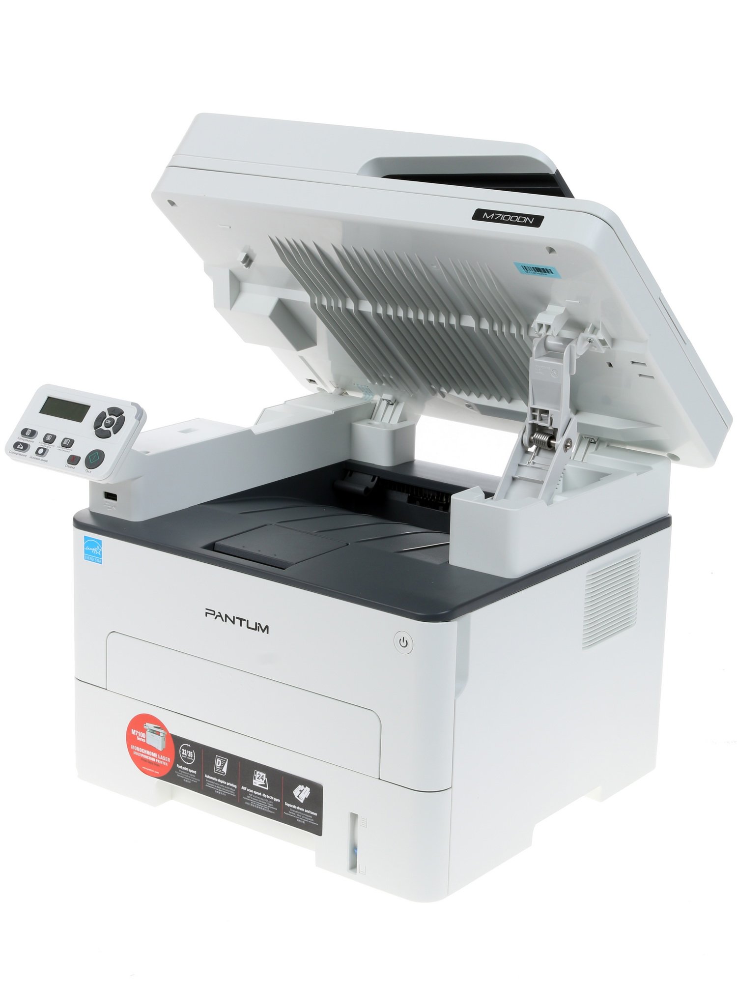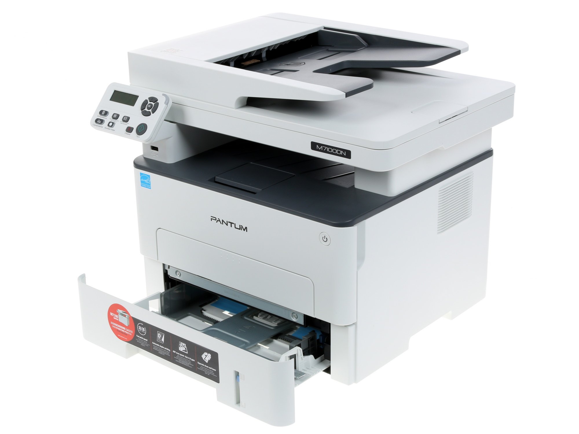 МФУ лазерное Pantum M7100DN – практичное устройство, которое будет вас радовать ни один год. Его особенность в многофункциональности: аппарат функционирует не только в режиме принтера, но и служит для сканирования и копирования. Модели присуща черно-белая печать, поэтому МФУ не годится для печати фото.