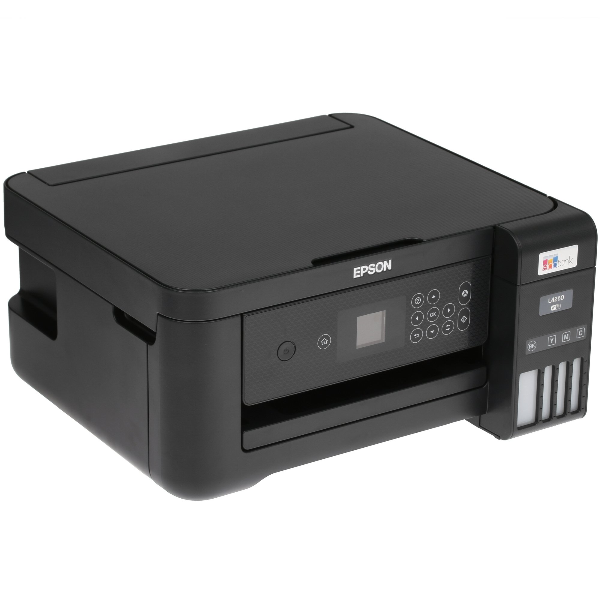 МФУ струйное Epson L4260 в лаконичном черном корпусе выполняет функции цветного принтера, планшетного сканера и копира. Модель позволяет использовать СНПЧ и автоматическую двустороннюю печать. Вы можете работать с разными носителями, обладающими плотностью 64-256 г/м², в том числе карточками и фотобумагой. Это позволяет печатать красивые открытки, буклеты и фотографии.