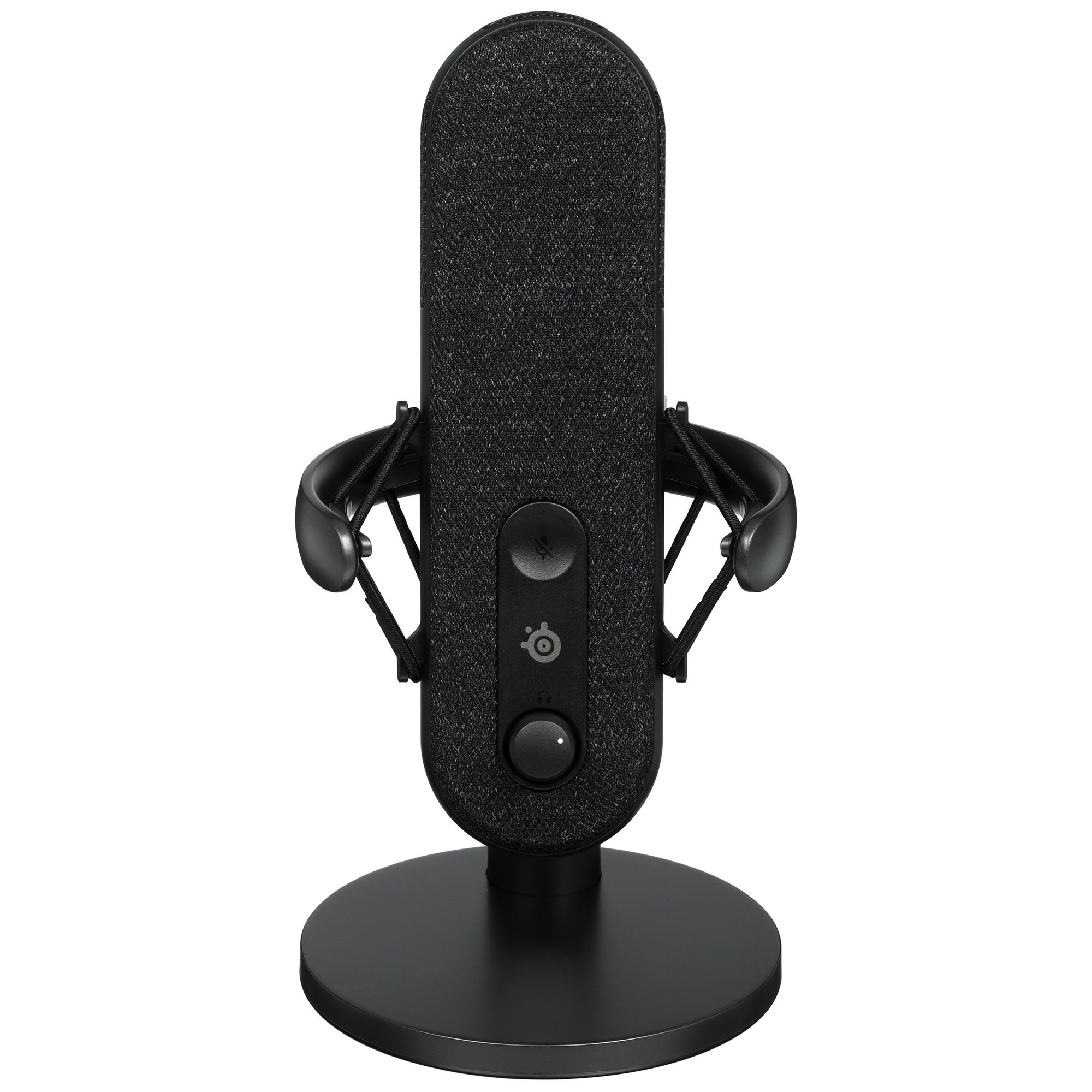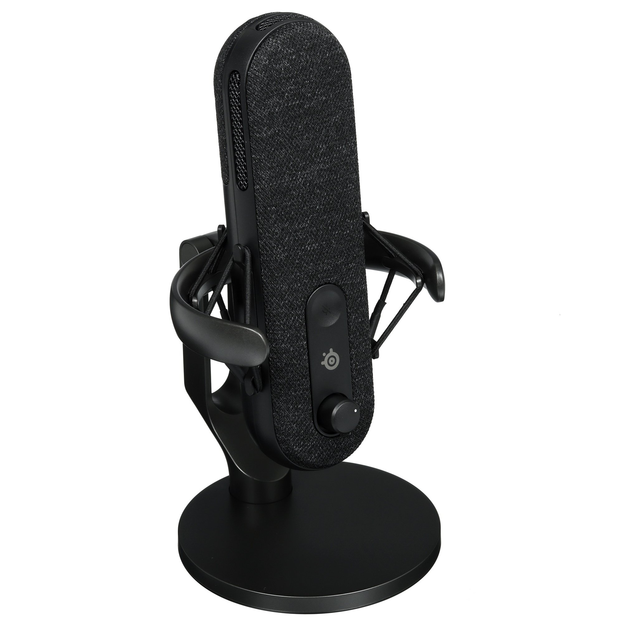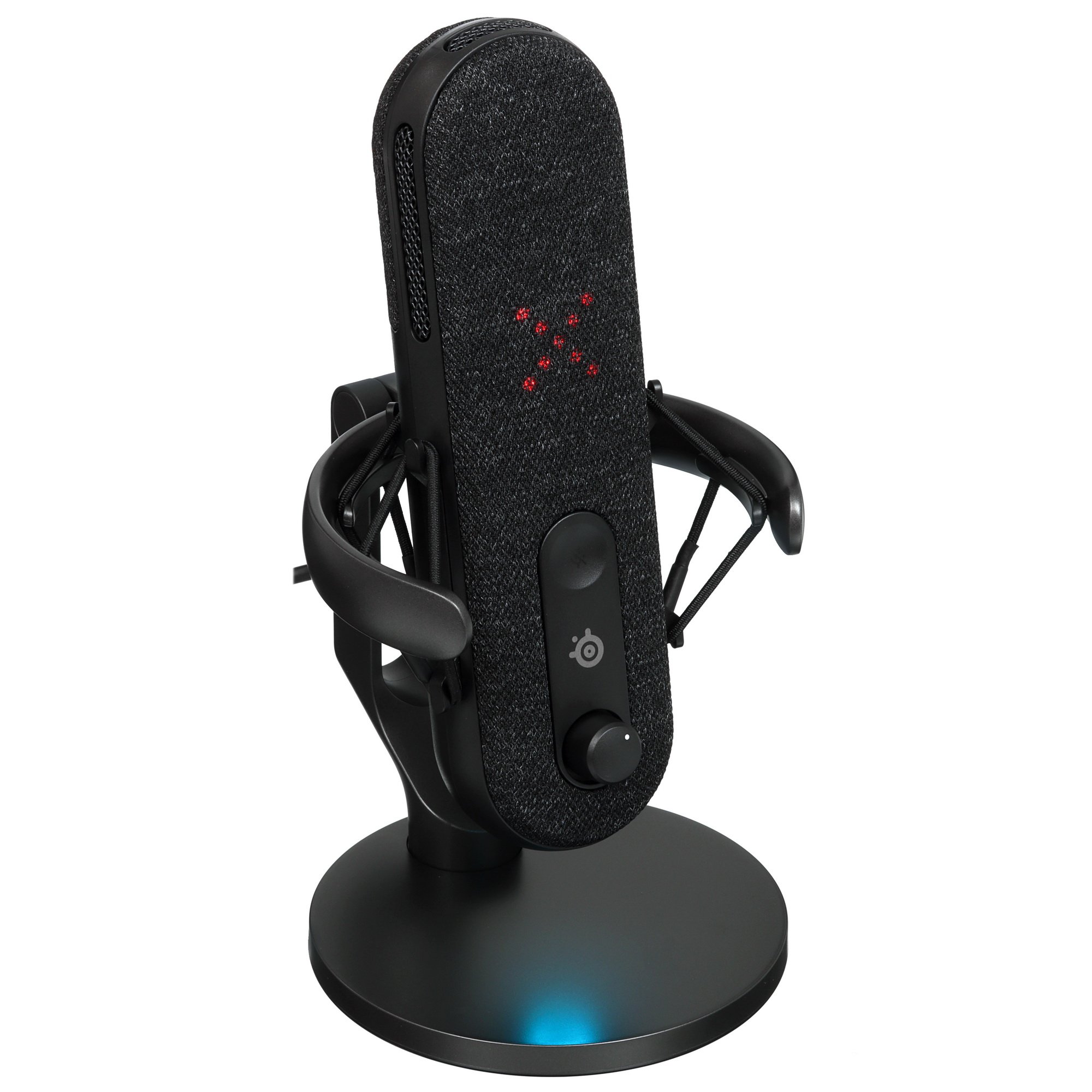 Микрофон Steelseries Alias поддерживает широкий частотный диапазон – от 50 до 20000 Гц. В модели реализованы функции регулировки чувствительности и громкости наушников. В наличии механическая кнопка отключения. Светодиодные индикаторы помогают контролировать уровень звука. Особенность внешнего вида микрофона – RGB подсветка. Модель поставляется с настольной подставкой, антивибрационным подвесом и креплением на стойку.