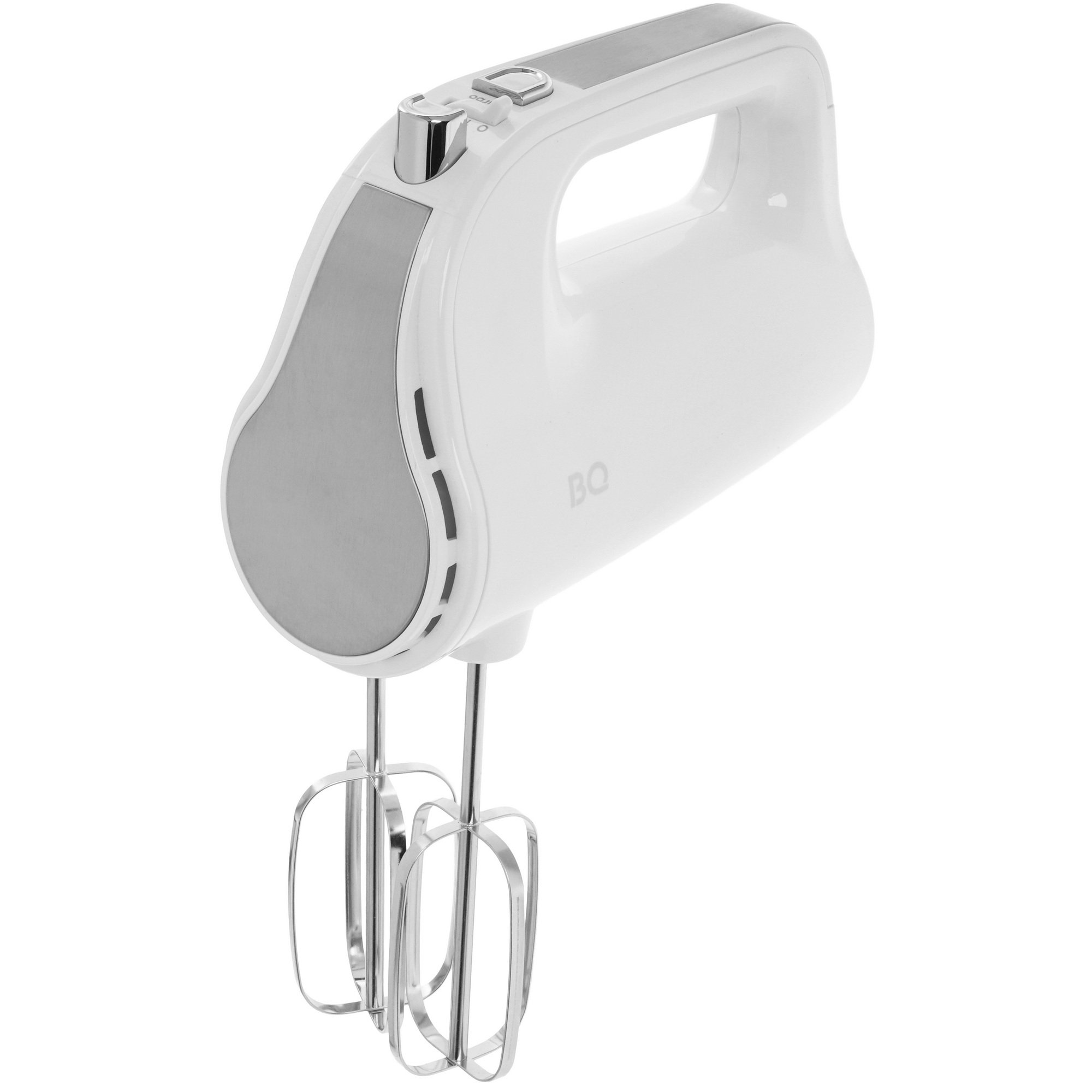 Белый миксер BQ MX423 оснащен 4 насадками из нержавеющей стали, которые не портятся при постоянном контакте с жидкостями. Среди них есть 2 насадки-венчика и 2 крюка. Первые подойдут для взбивания крема, яичного белка, безе, а вторые нужны для замешивания теста. После завершения работы их можно отсоединить с помощью специальной кнопки.