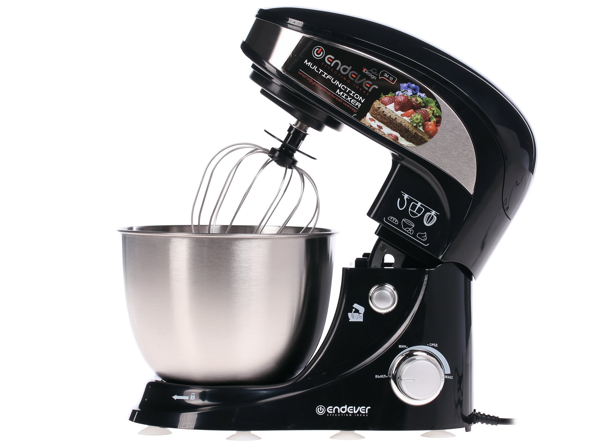 Endever Skyline SM-10 стильно выглядящий аппарат. Если вы часто готовите различного рода выпечку данный прибор станет вам незаменимым помощником в этом деле. Встроенный механизм осуществляет кружение насадки в одну сторону в то время как привод кружится в другую, благодаря этому удается достичь отличного уровня взбивания теста по всей емкости чаши. Последняя выполнена из метала и имеет объем равный 4 литрам. Прибор снабжен тремя различными уровнями скорости и переключателем, осуществляющим их плавную смену.