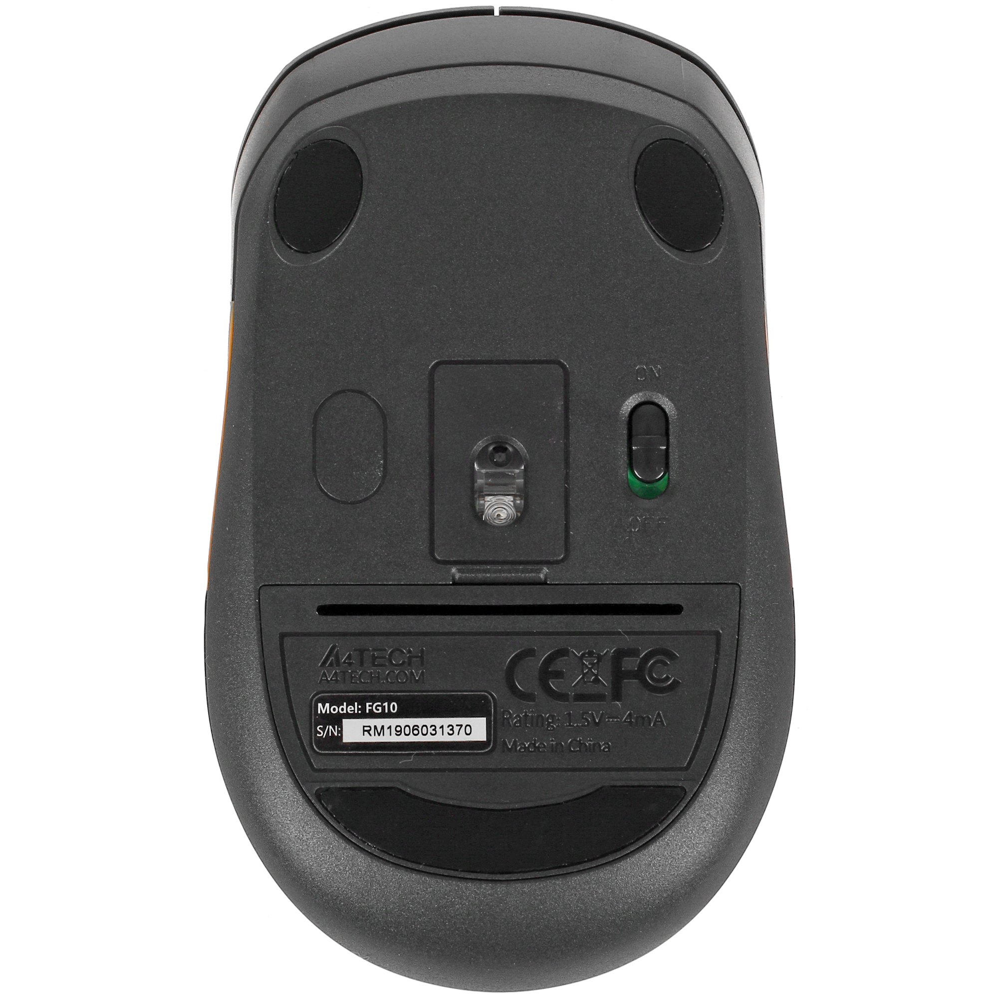Разрешение датчика A4Tech FStyler FG10 можно менять. На выбор пользователя представлены значения 1000, 1600 и 2000 dpi. Питание устройства осуществляется от одной пальчиковой батарейки, ее хватает обычно на год. Под крышкой на нижней стороне есть отсек для хранения USB-приемника, в котором его удобно хранить во время транспортировки или длительного простоя мыши.