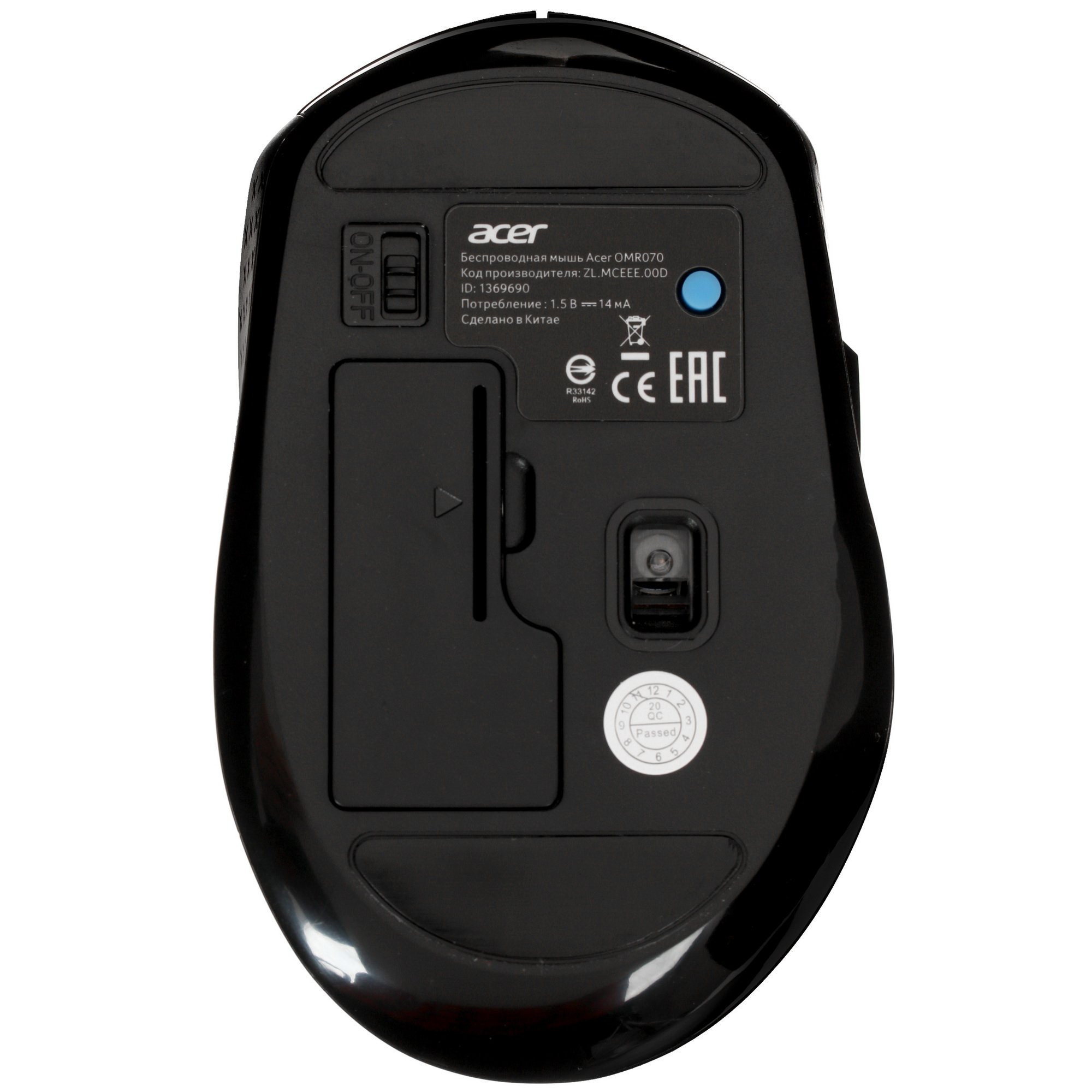 Мышь беспроводная Acer OMR070 черный, 1600 dpi, радиоканал, Bluetooth, USB, кнопки - 6