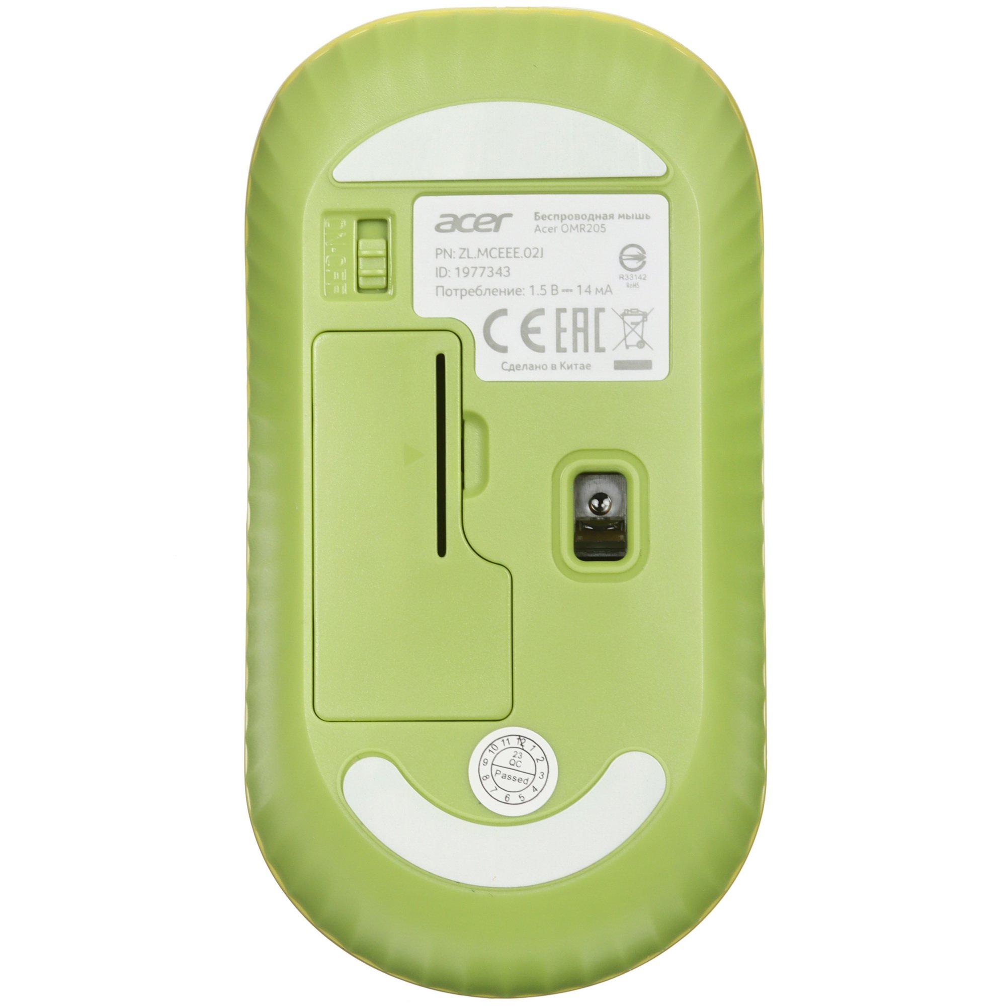 Мышь беспроводная Acer OMR205 зеленый/желтый, 1200 dpi, радиоканал, USB, кнопки - 3