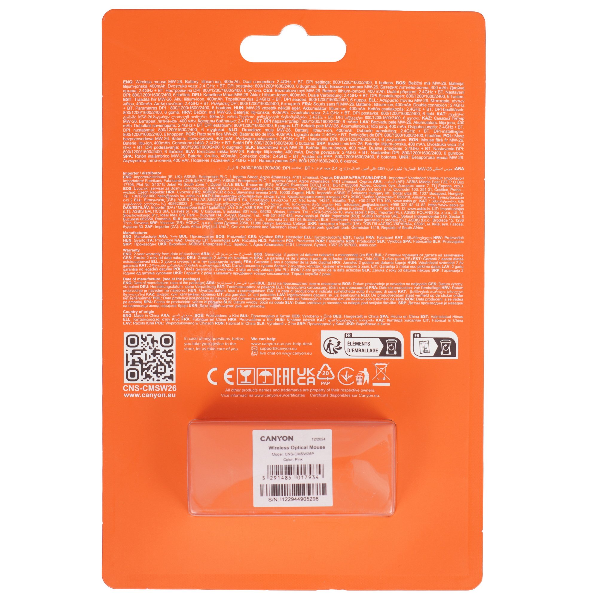 Высокопроизводительная беспроводная мышь CANYON MW-26 с поддержкой двух режимов соединения (2,4 ГГц и Bluetooth) для быстрой смены устройств. Эргономичная конструкция и малый вес обеспечивают максимальный комфорт. Оснащена шестью функциональными кнопками и регулируемым уровнем DPI от 800 до 2400, обеспечивая необходимую точность или скорость реакции. Частота опроса 125 Гц и ускорение до 10G гарантируют точное выполнение всех ваших команд.