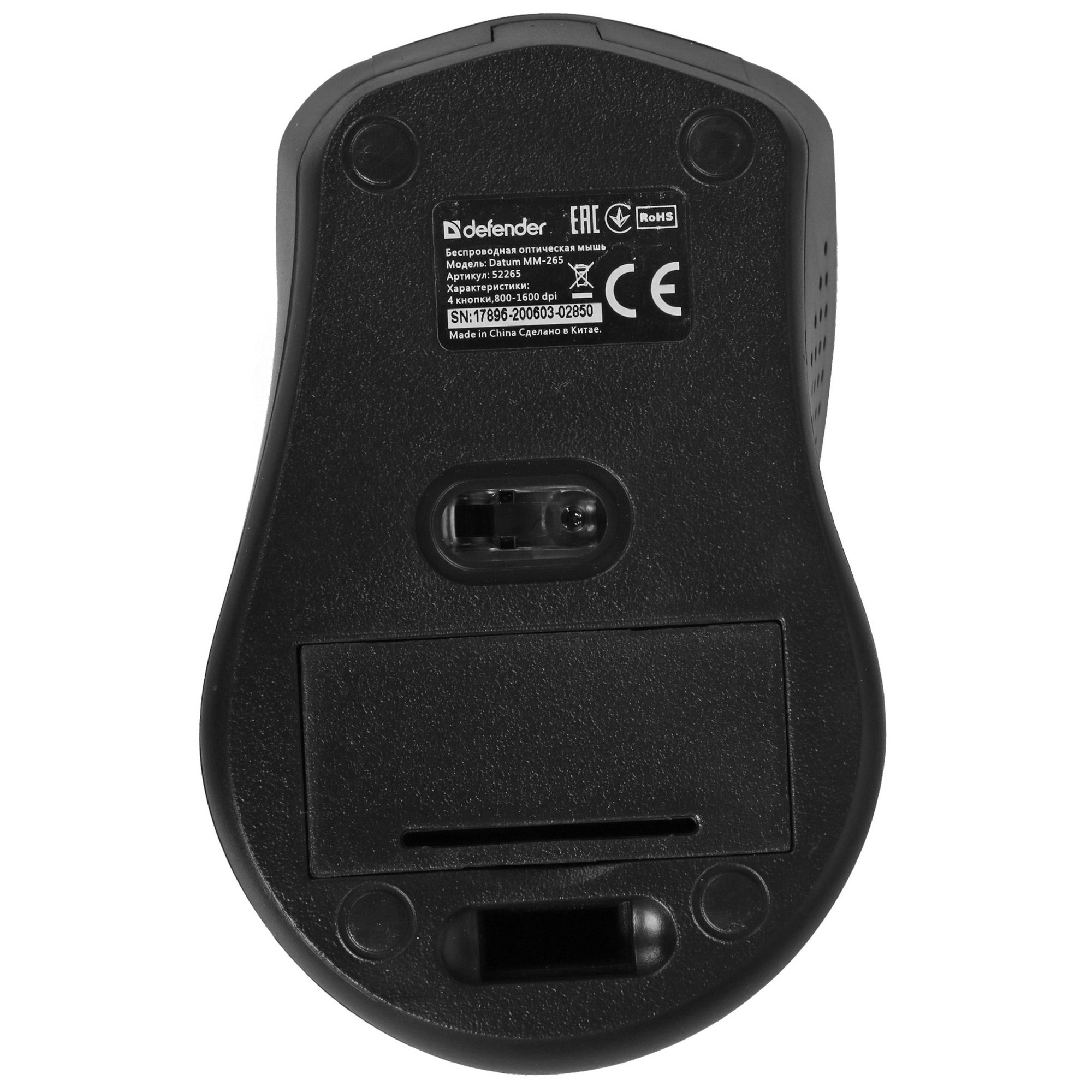Мышь беспроводная Defender Datum MM-265 черный, 1600 dpi, радиоканал, USB, кнопки - 4