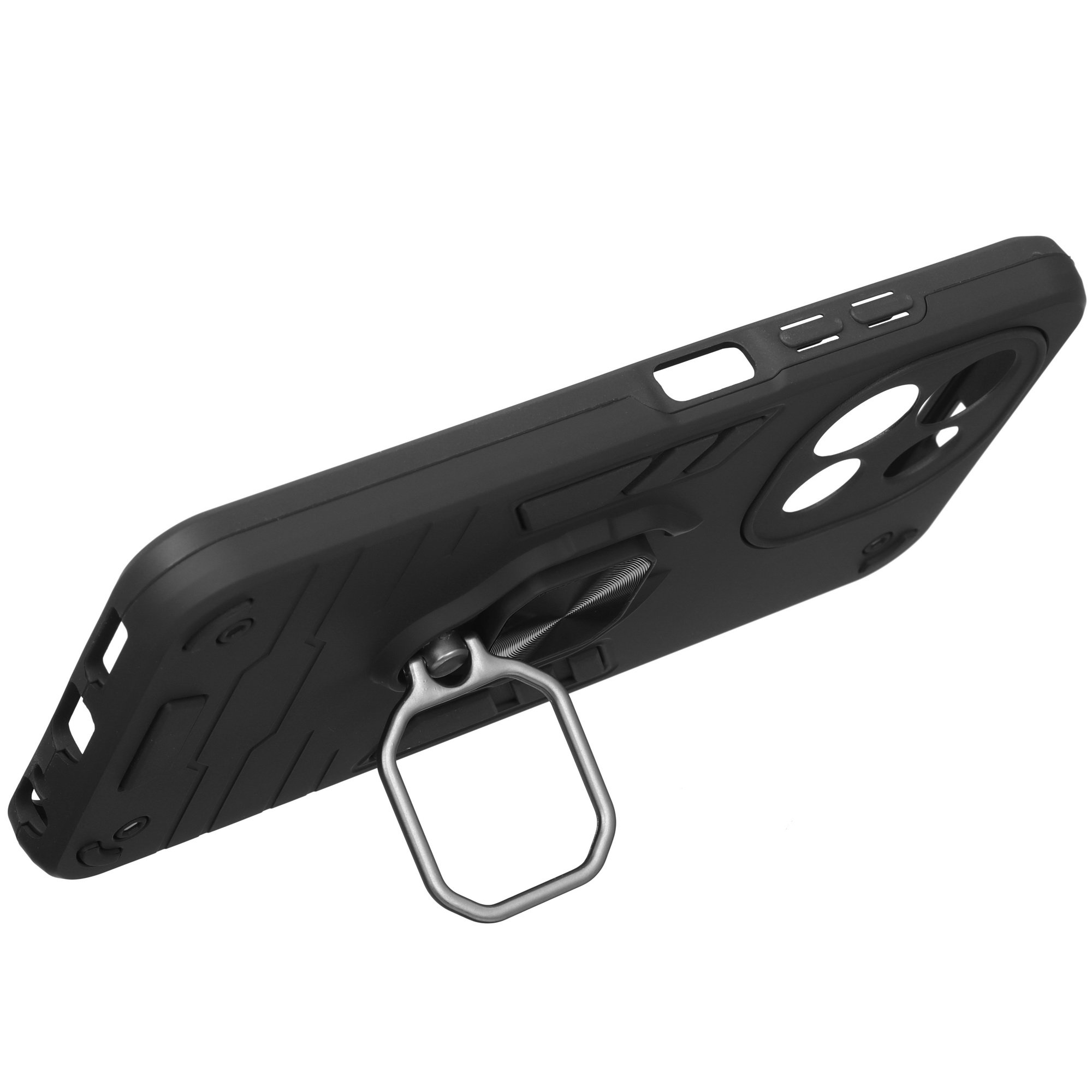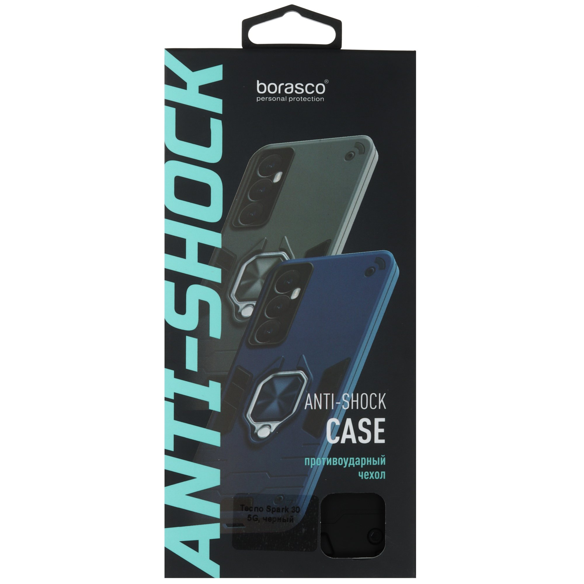 BoraSCO Anti-Shok Case для устройств Tecno SPARK 30 5G выполнена в однотонном черном дизайне. Кольцо-держатель не дает уронить устройство во время телефонного разговора, удержания в перчатке или влажной ладонью. Функция горизонтальной подставки делает удобным просмотр видео при установке смартфона на стол или другую поверхность.
