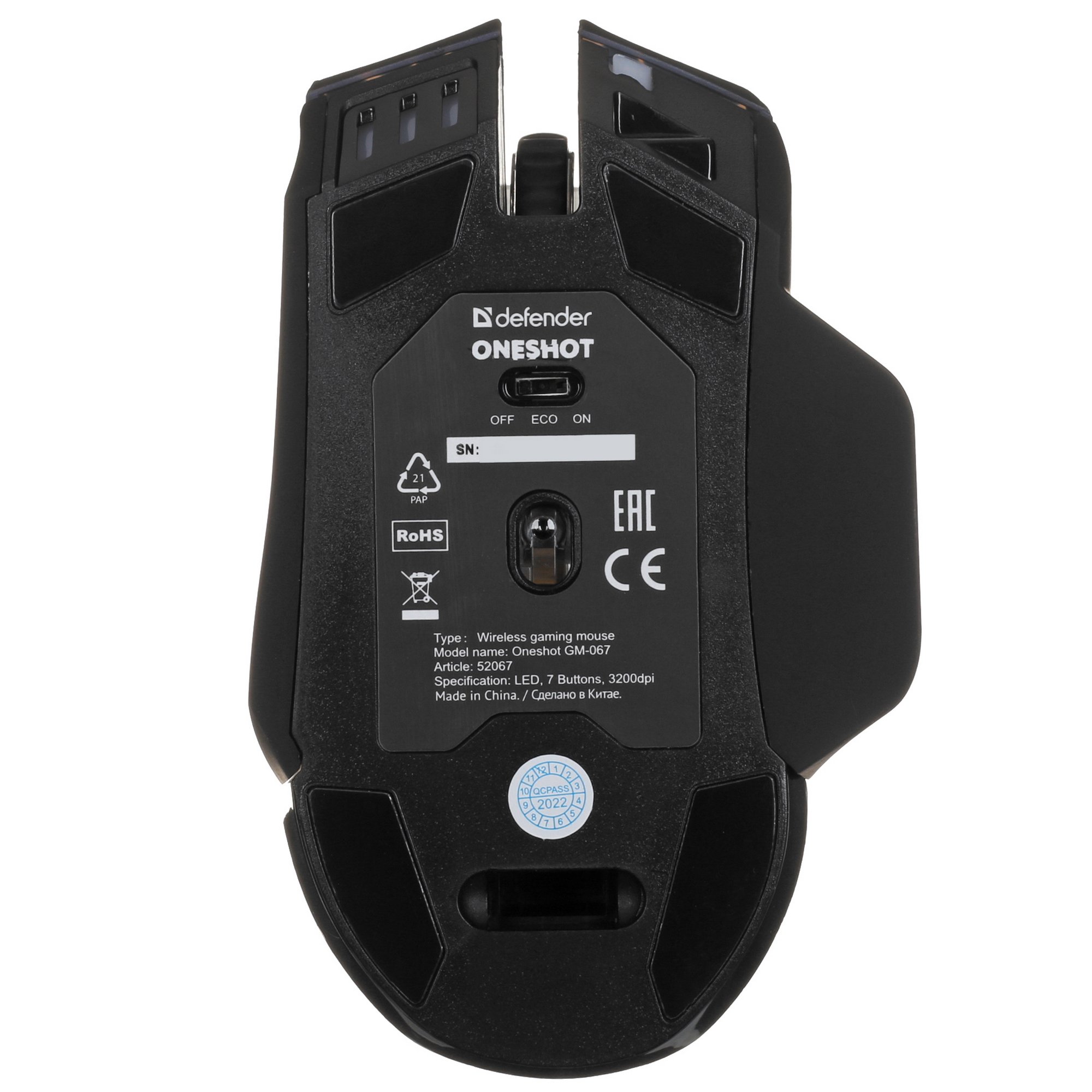 Мышь беспроводная Defender Oneshot GM-067 черный, 3200 dpi, радиоканал, USB, кнопки - 7