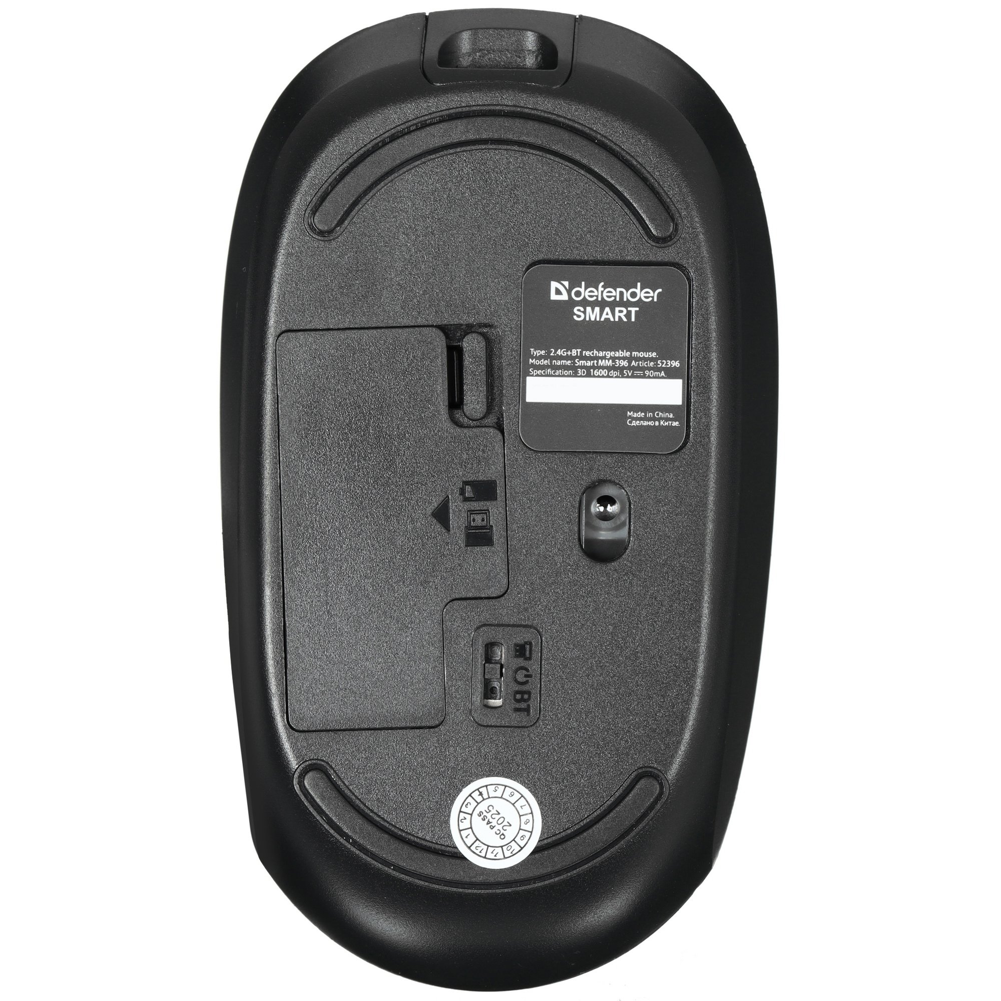 Мышь беспроводная Defender Smart MM-396 черный, 1600 dpi, радиоканал, Bluetooth, USB, кнопки - 3