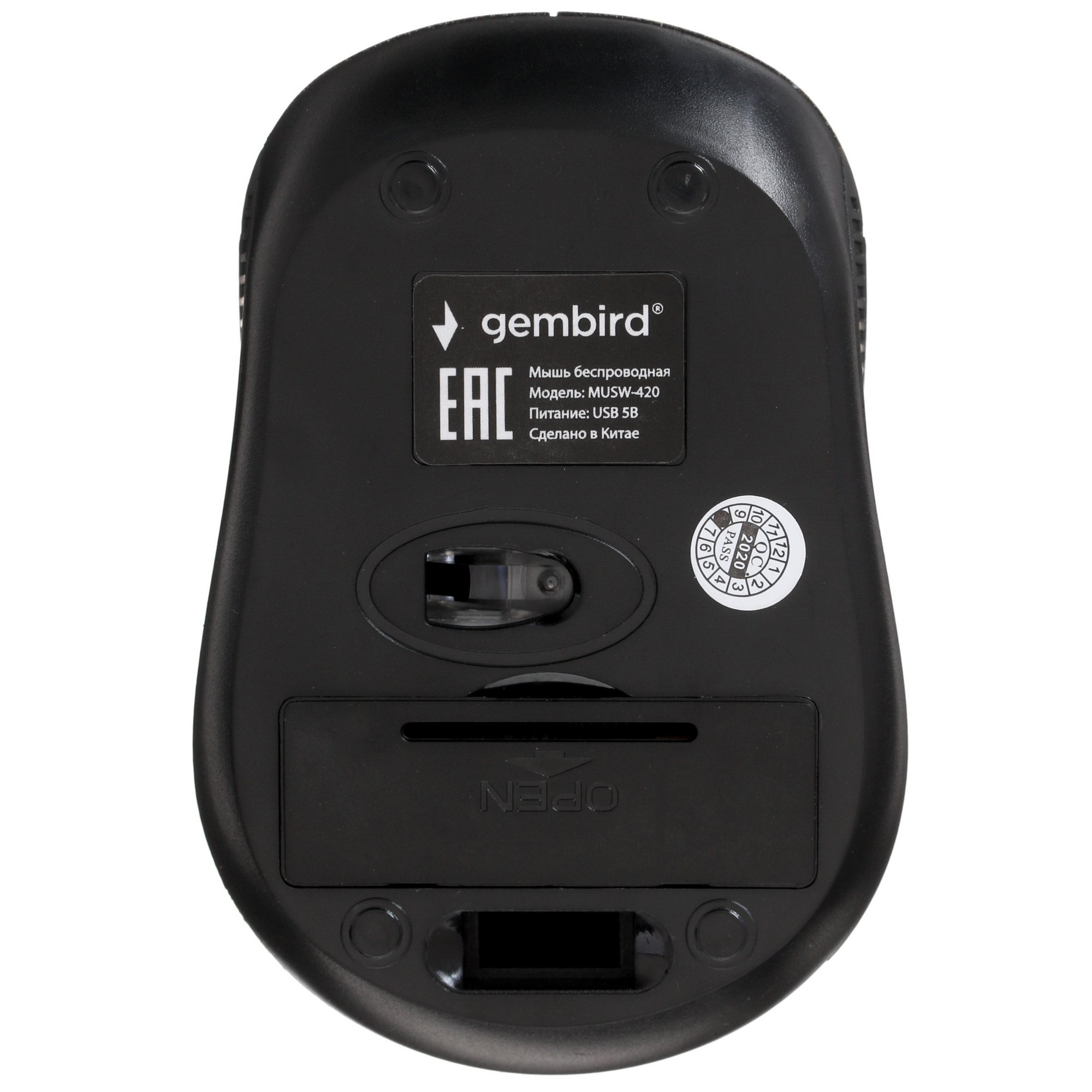 Компактная мышь беспроводная Gembird MUSW-420 позволяет менять положение датчика сенсора в четырех положениях от 1000 до 1600 dpi, чтобы подобрать оптимальную скорость перемещения в зависимости от вида работ. Подключение к компьютеру осуществляется с помощью компактного USB-ресивера.