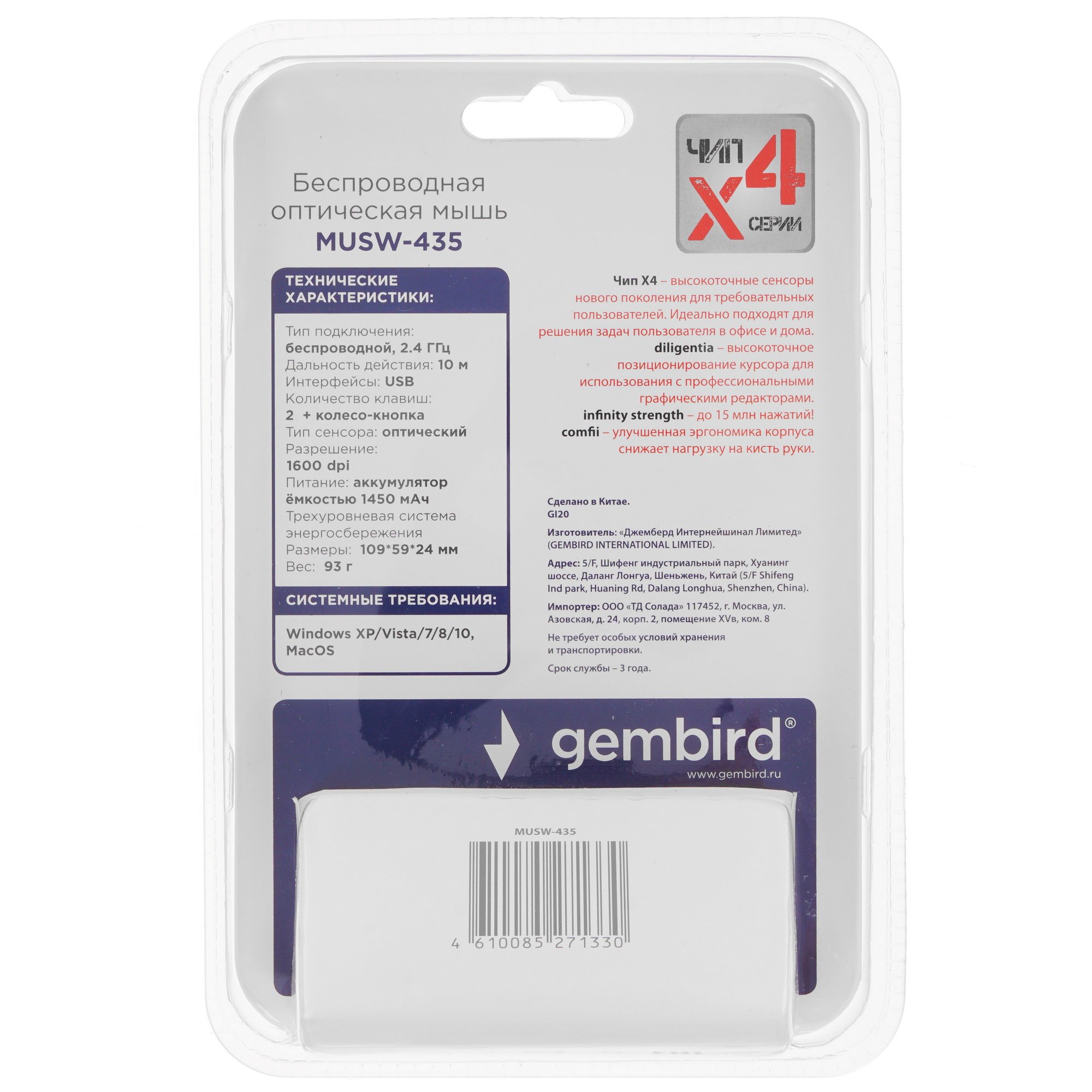 Мышь беспроводная Gembird MUSW-435 благодаря лаконичному дизайну и простому функционалу подходит для работы за компьютером дома или в офисе. Устройство представлено в черном пластиковом корпусе. На такой матовой поверхности практически не заметны отпечатки пальцев, а загрязнения легко удаляются.