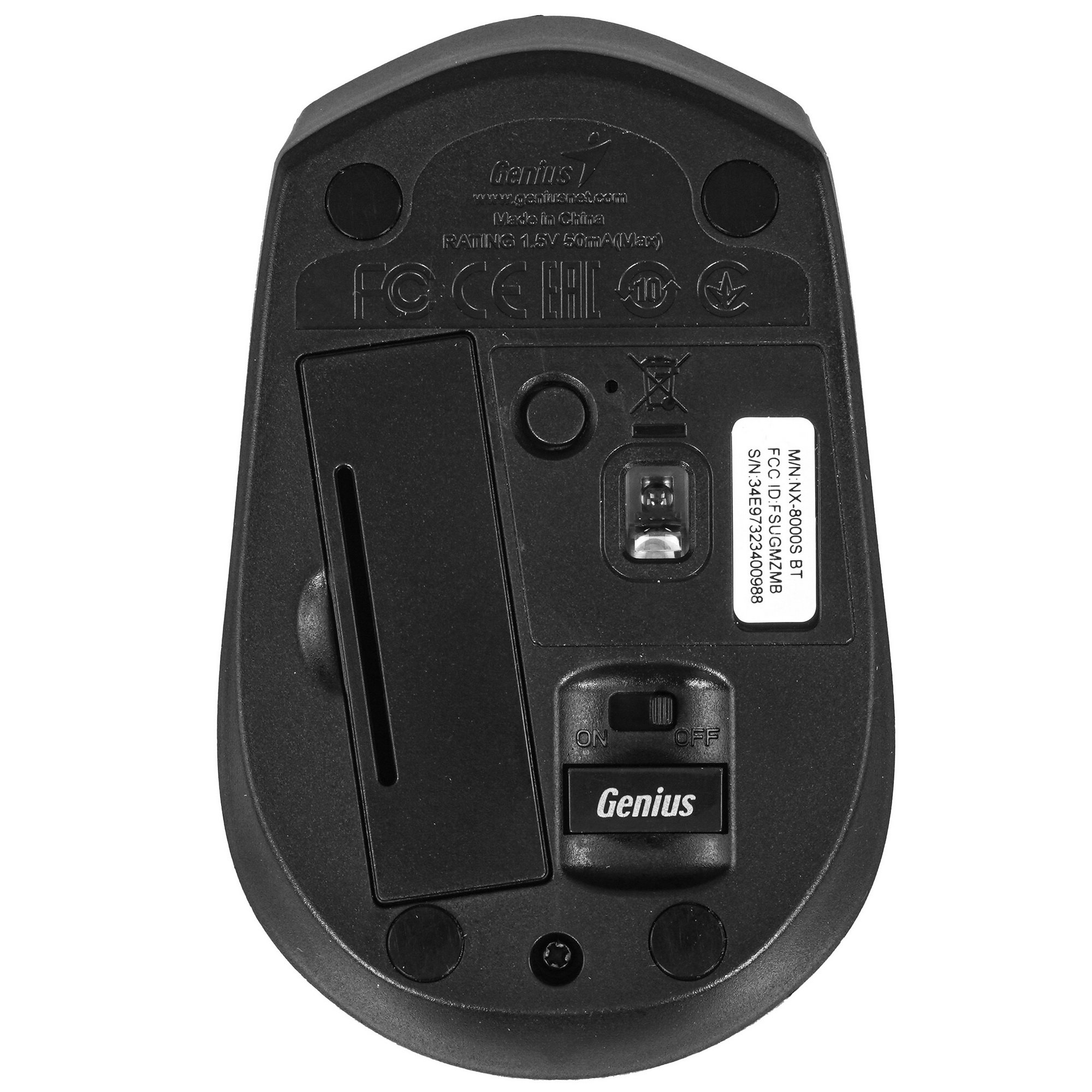 Мышь беспроводная Genius NX-8000S BT черный, 1200 dpi, радиоканал, Bluetooth, USB, кнопки - 3