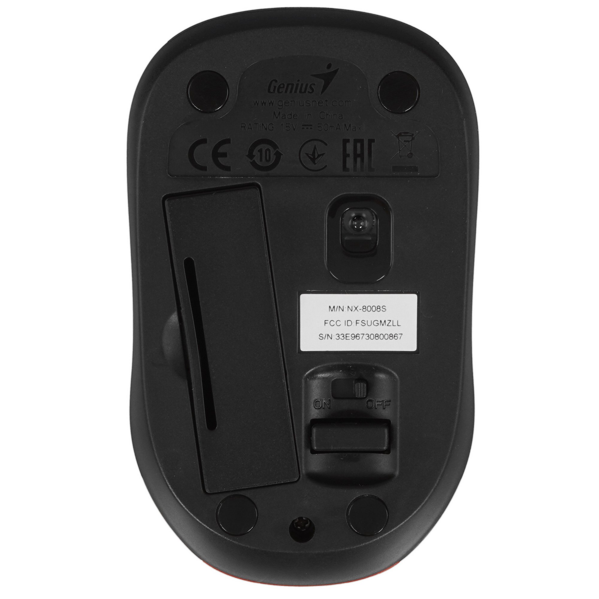 Мышь беспроводная Genius NX-8008S [31030028401] получает выполненный из глянцевого красного и черного пластика корпус. Симметричный дизайн корпуса делает устройство ввода удобным для управления как правой, так и левой рукой. Рассчитанная на офисное применение модель располагает тремя классическими переключателями. Она отличается бесшумным срабатыванием всех клавиш.