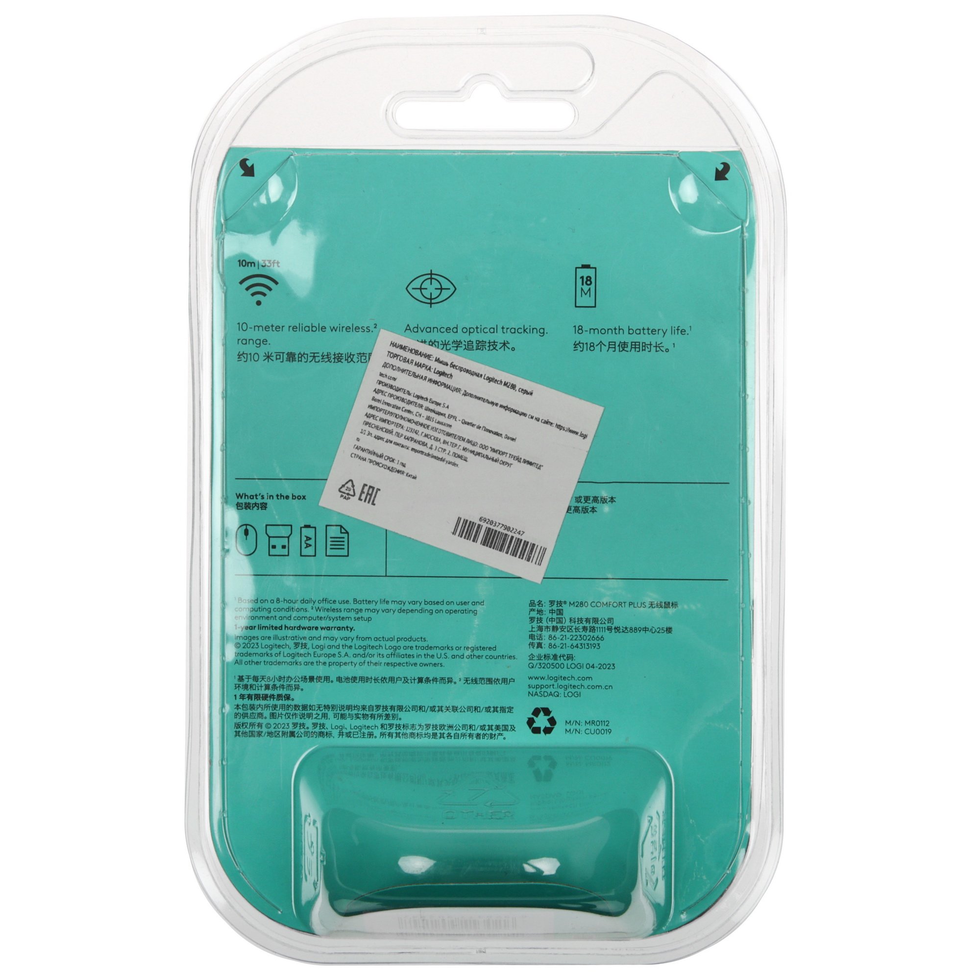 Беспроводная мышь Logitech M280 получила в свое оснащение оптический светодиодный сенсор с разрешением 1000 dpi, который в сочетании с трехкнопочной конструкцией обеспечит пользователя всем необходимым для удобства управления процессом на экране компьютера и комфортной работы в офисных программах. Беспроводное подключение посредством радиоканала позволит навсегда забыть о путающихся проводах, а радиус действия 10 метров обеспечит возможностью свободно расположиться за компьютерным столом любых размеров.
