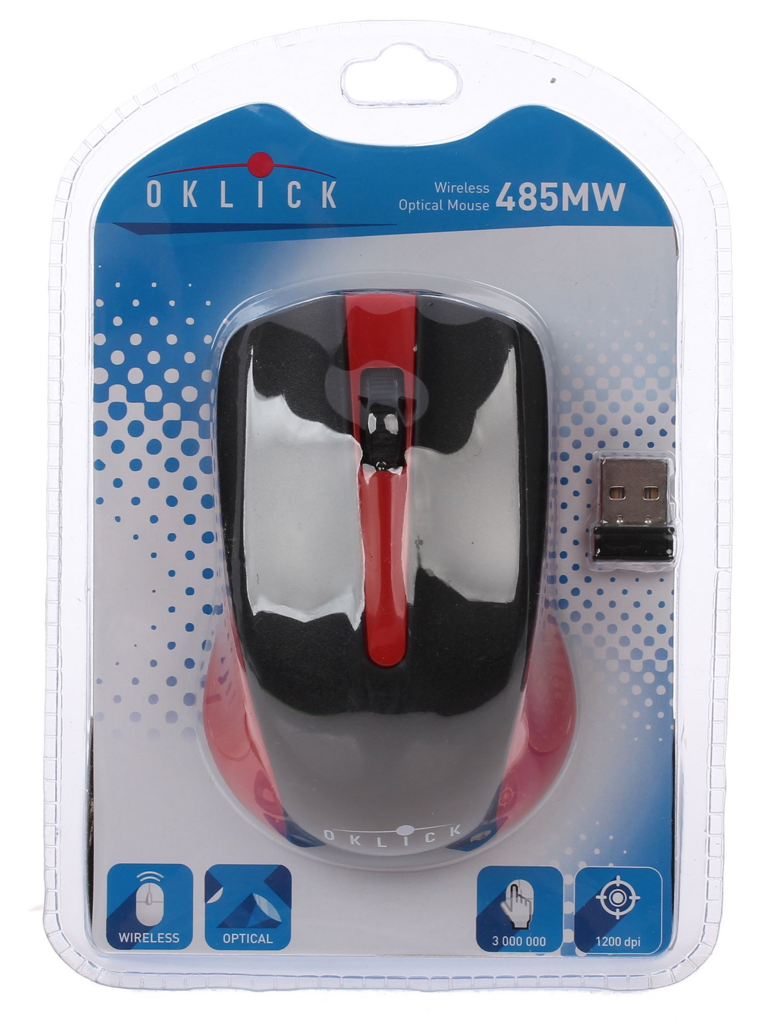 Мышь беспроводная Oklick 485MW черный/синий, 1200 dpi, радиоканал, USB, кнопки - 3