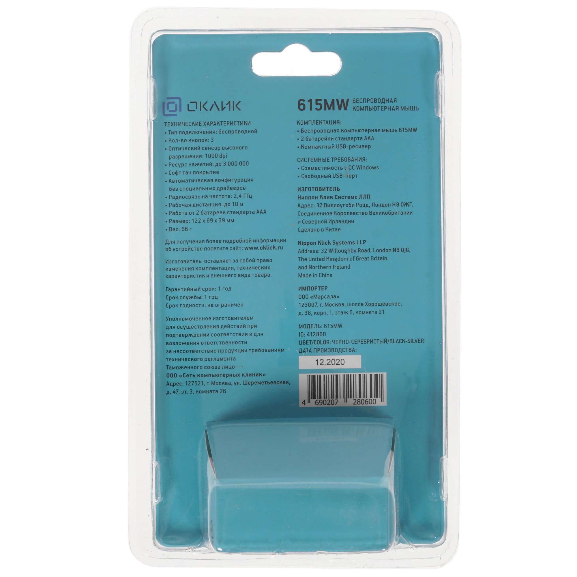 Основой Oklick 615MW является оптический светодиодный сенсор, чувствительность которого составляет 1000 dpi. Благодаря этому, а также весу всего 90 г данная модель отличается легкостью перемещения и обеспечит точное позиционирование курсора на экране мониторов даже с большим разрешением. Для работы мыши с другими устройствами используется беспроводное соединение через ресивер, который подключается через коннектор USB-A. В качестве источника питания модели применяются 2 батарейки типа AAA. Поставка мыши осуществляется в фирменной упаковке.