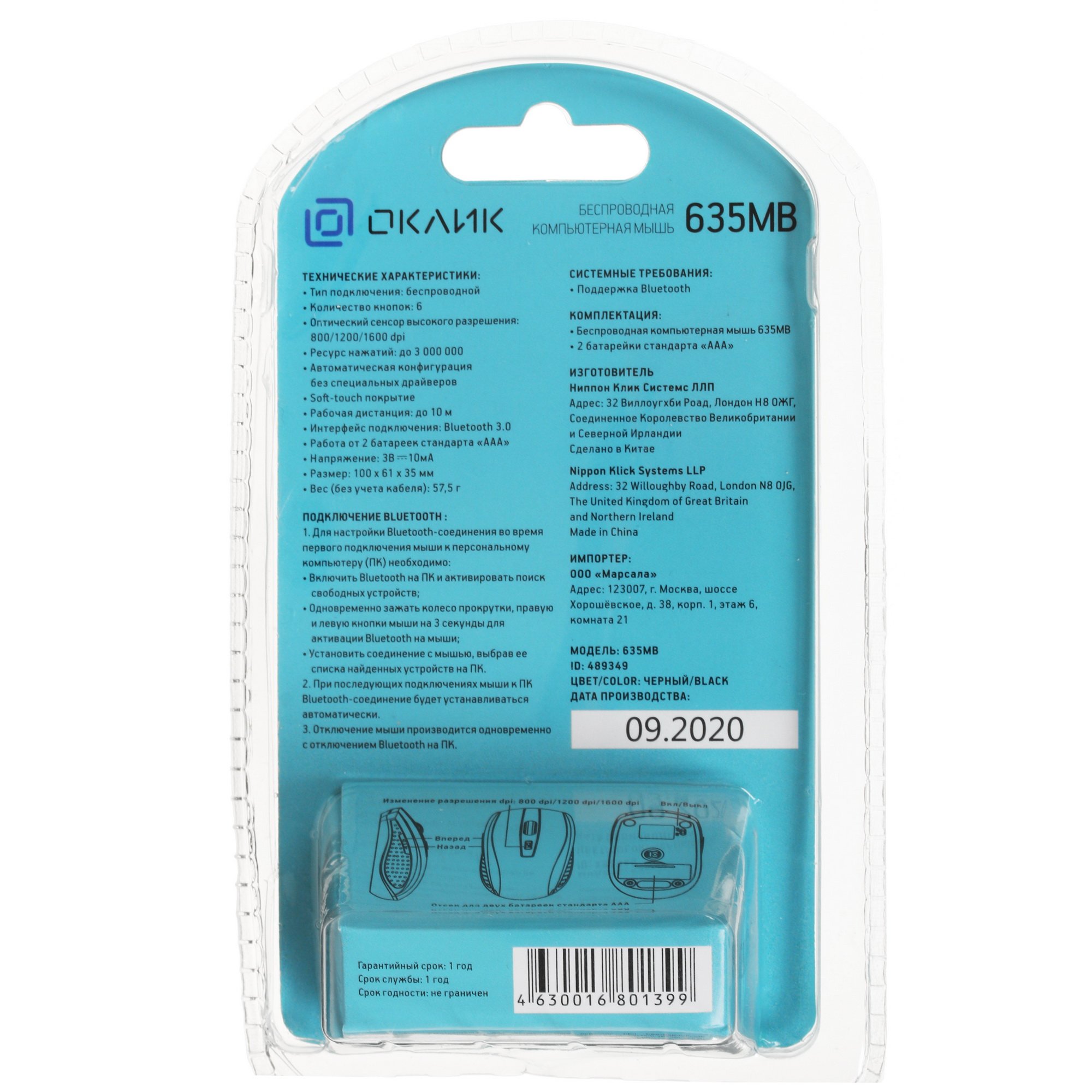 Компактная мышь беспроводная Oklick 635MB – безукоризненно простое и понятное в обращении устройство. Оно идеально подходит для работы в офисных приложениях и интернет-серфинга. Мышь получила от производителя 6 кнопок и оптический светодиодный сенсор, способный функционировать в режимах разрешений 800, 1200 и 1600 dpi. К компьютеру она подключается за счет Bluetooth-модуля, радиус действия которого достигает 10 м. Благодаря прямой, без изгибов, конструкции корпуса использовать мышь беспроводную Oklick 635MB получится обеими руками. Для функционирования устройства нужны 2 батарейки типа AAA.