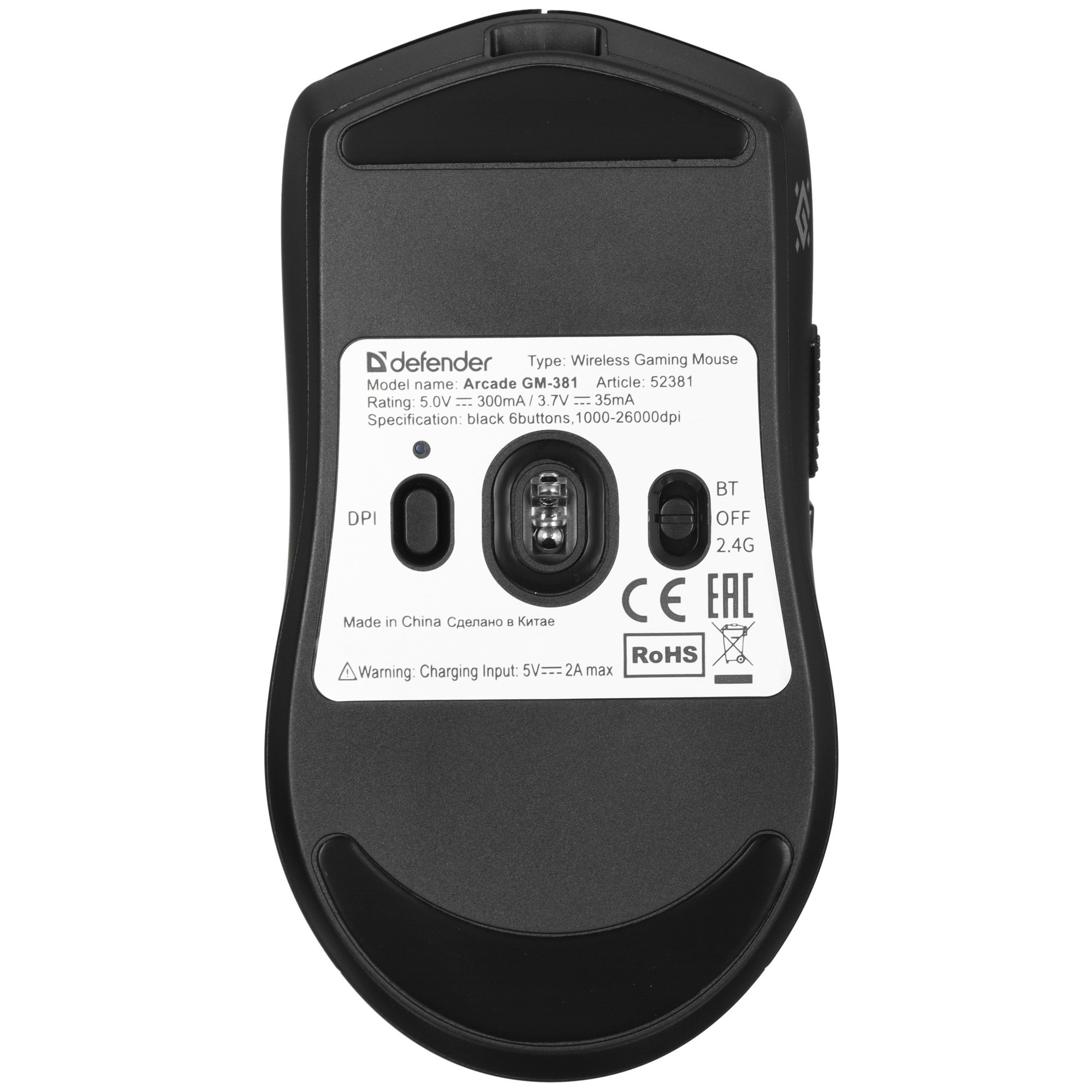Мышь беспроводная/проводная Defender Arcade GM-381 черный, 26000 dpi, радиоканал, Bluetooth, USB, кнопки - 6