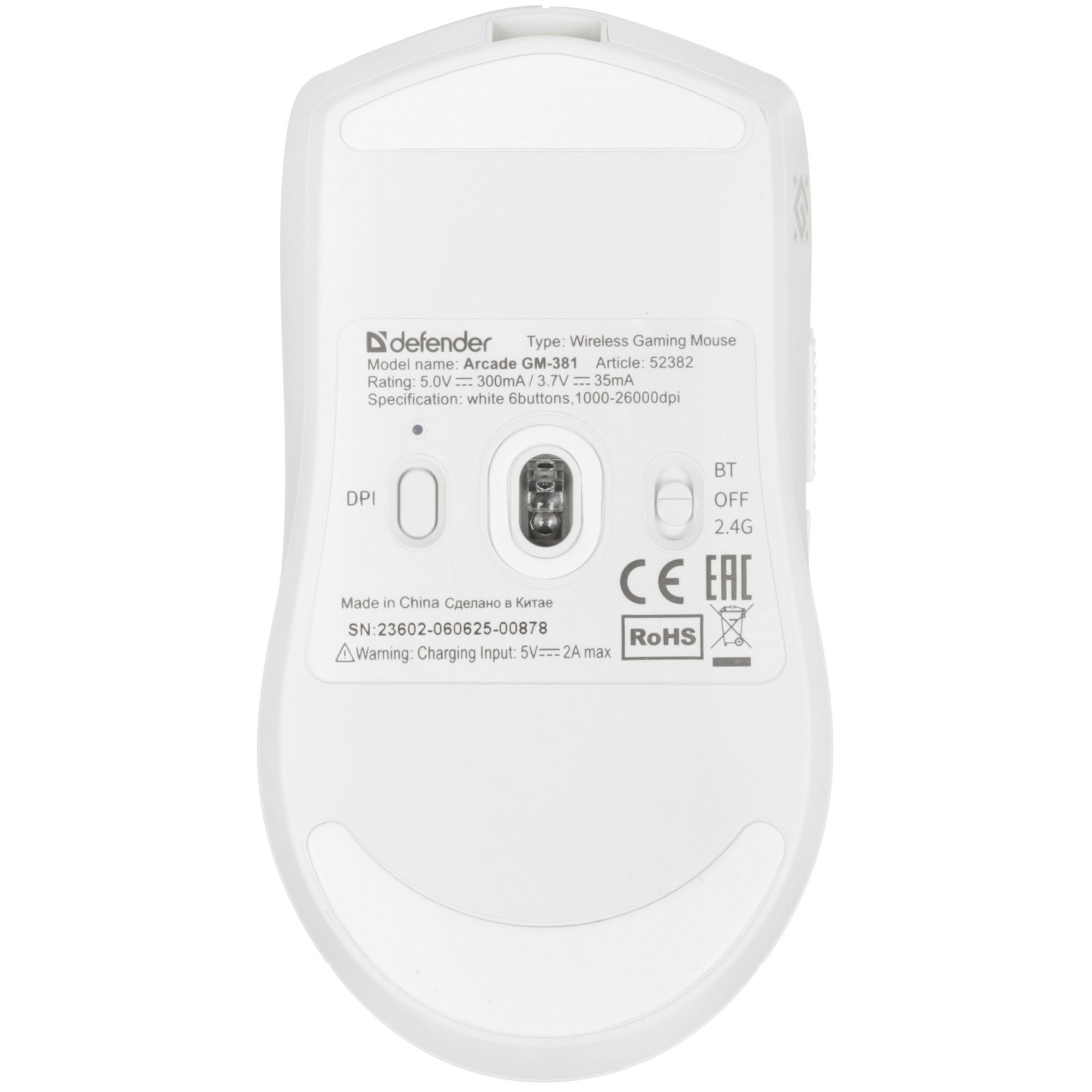 Мышь беспроводная/проводная Defender Arcade GM-381 белый, 26000 dpi, радиоканал, Bluetooth, USB, кнопки - 6