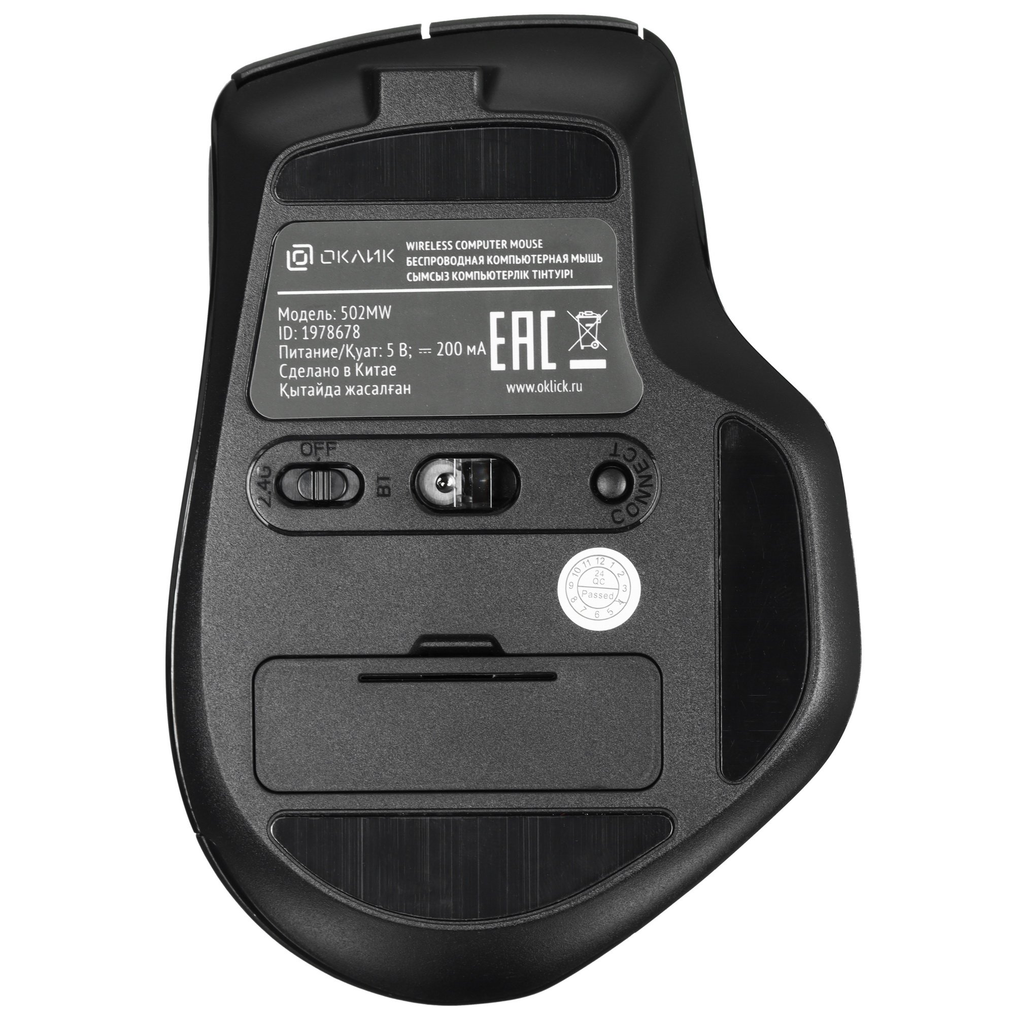 Мышь беспроводная Oklick 502MW черный, 2400 dpi, радиоканал, Bluetooth, USB, кнопки - 9