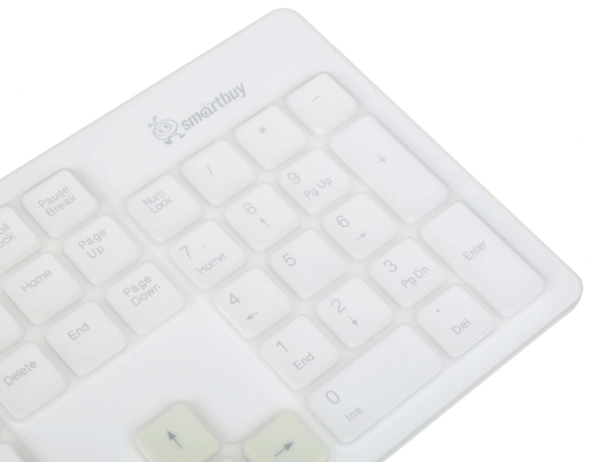 Клавиатура отличается влагозащищенной конструкцией благодаря силиконовой защите, а также ультратонким дизайном, так что она оптимально впишется в рабочее пространство вашего стола. Что касается мыши, то она отлично подходит для пользования и левой, и правой руками, легко скользит по коврику, чутко реагируя на малейшие неровности. Smartbuy SBC-218346AG-W отличается низким энергопотреблением.