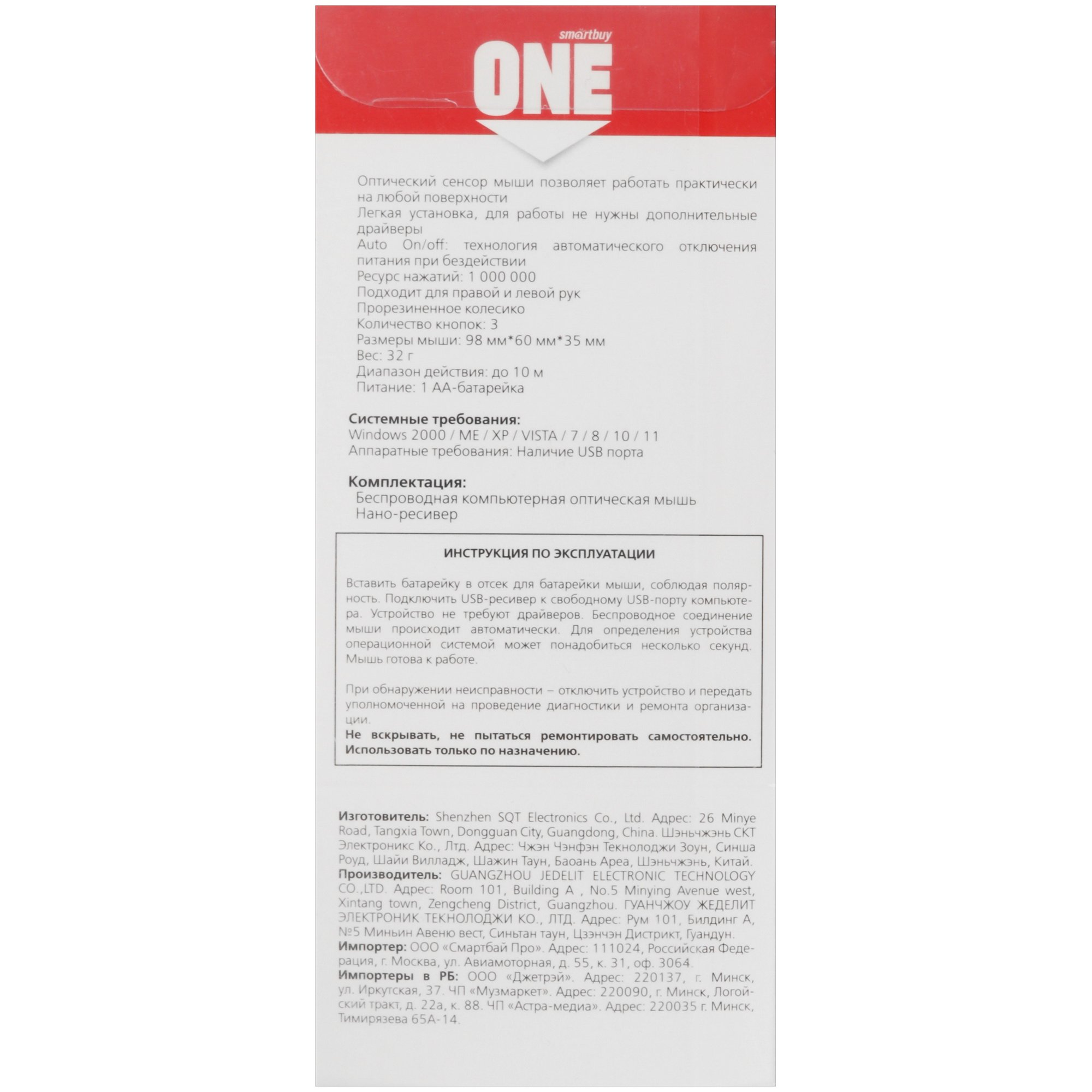 Мышь беспроводная Smartbuy ONE SBM-200AG-R станет стильным аксессуаром к ПК для удобной работы в условиях офиса или дома. В мышке используется оптический сенсор, который быстро и точно распознает движения благодаря высокой чувствительности, настраиваемой отдельной кнопкой в диапазоне 800-1600 dpi. Обтекаемая эргономичная форма корпуса оптимизирована для хвата правой и левой рукой. Манипулятор Smartbuy ONE SBM-200AG-R подключается по беспроводному интерфейсу Wireless с использованием компактного ресивера и работает на основе батарейки АА.