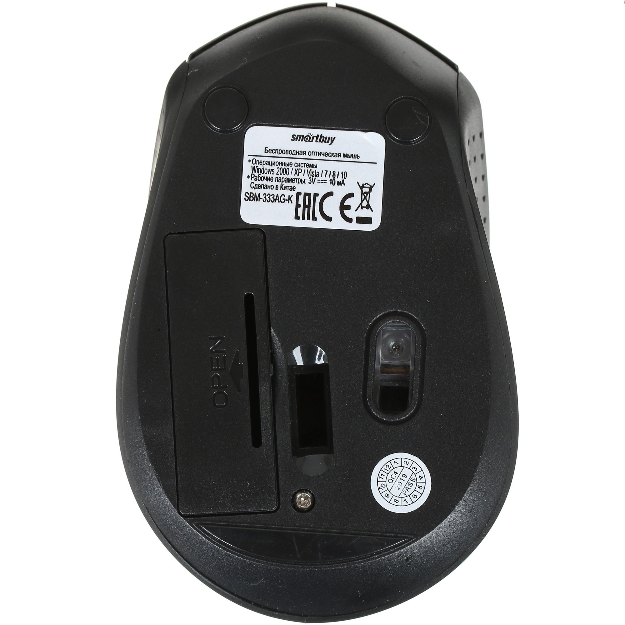Мышь беспроводная Smartbuy SBM-333AG-K оснащена светодиодным оптическим сенсором (1200 dpi), благодаря которому обеспечивается высокая точность движения курсора на экране ПК. У мыши предусмотрены две стандартные кнопки и колесико прокрутки. У кнопок достаточно высокая степень тактильной отдачи, что предполагает мгновенный отклик даже на легкое нажатие. Для питания мыши используются батарейки типа ААА в количестве 2 штук.