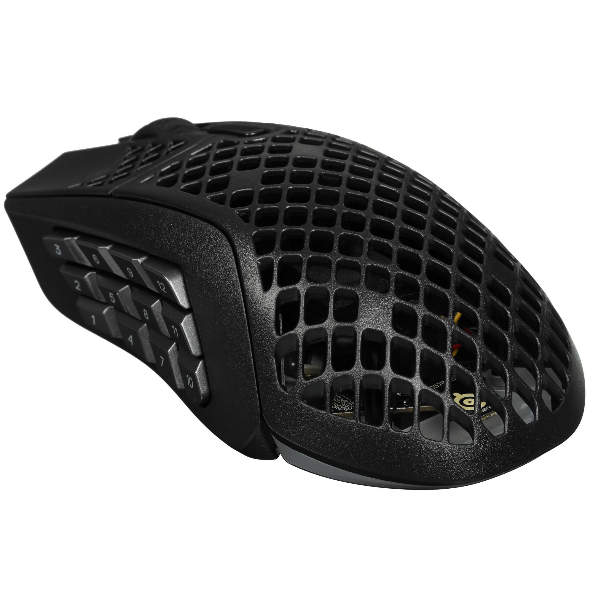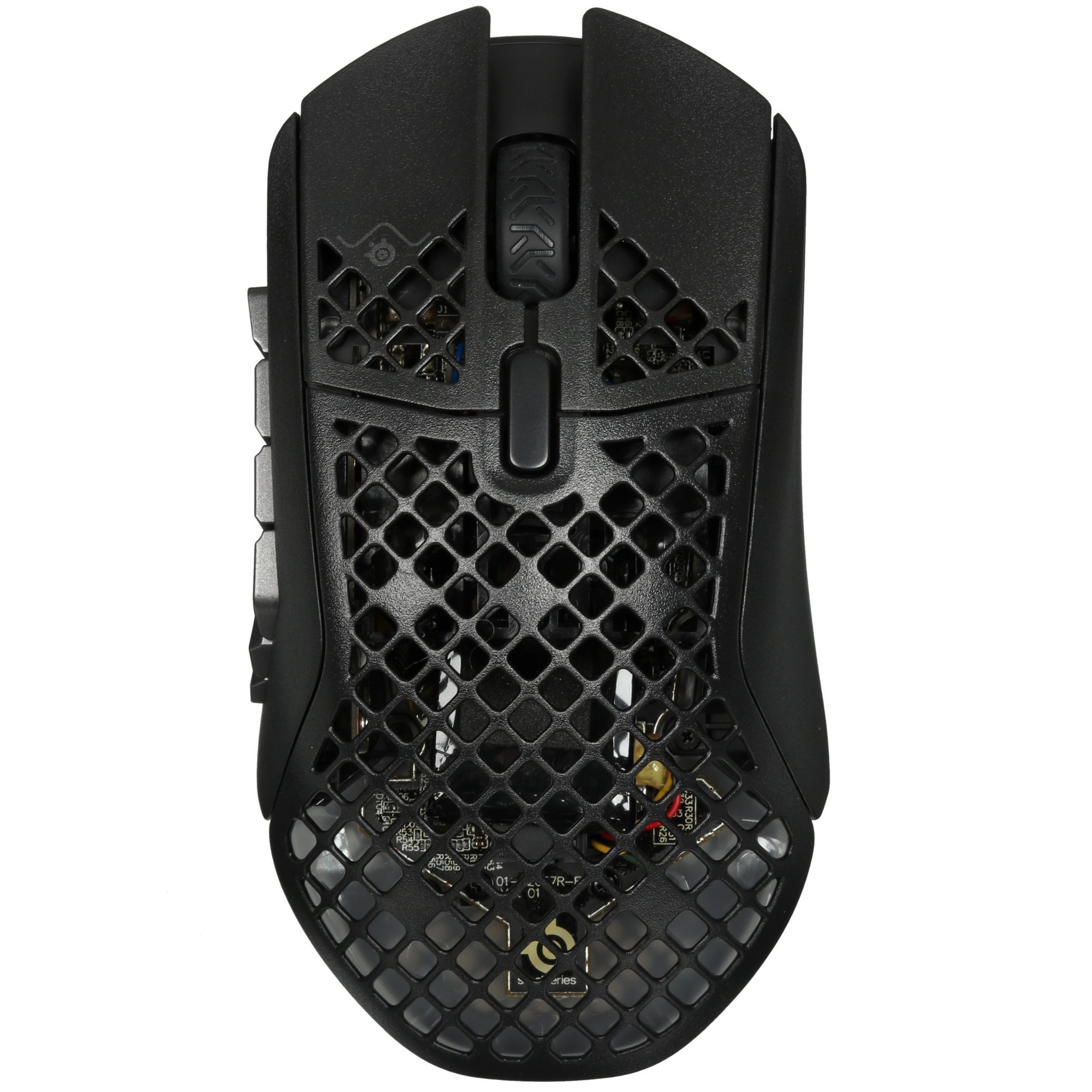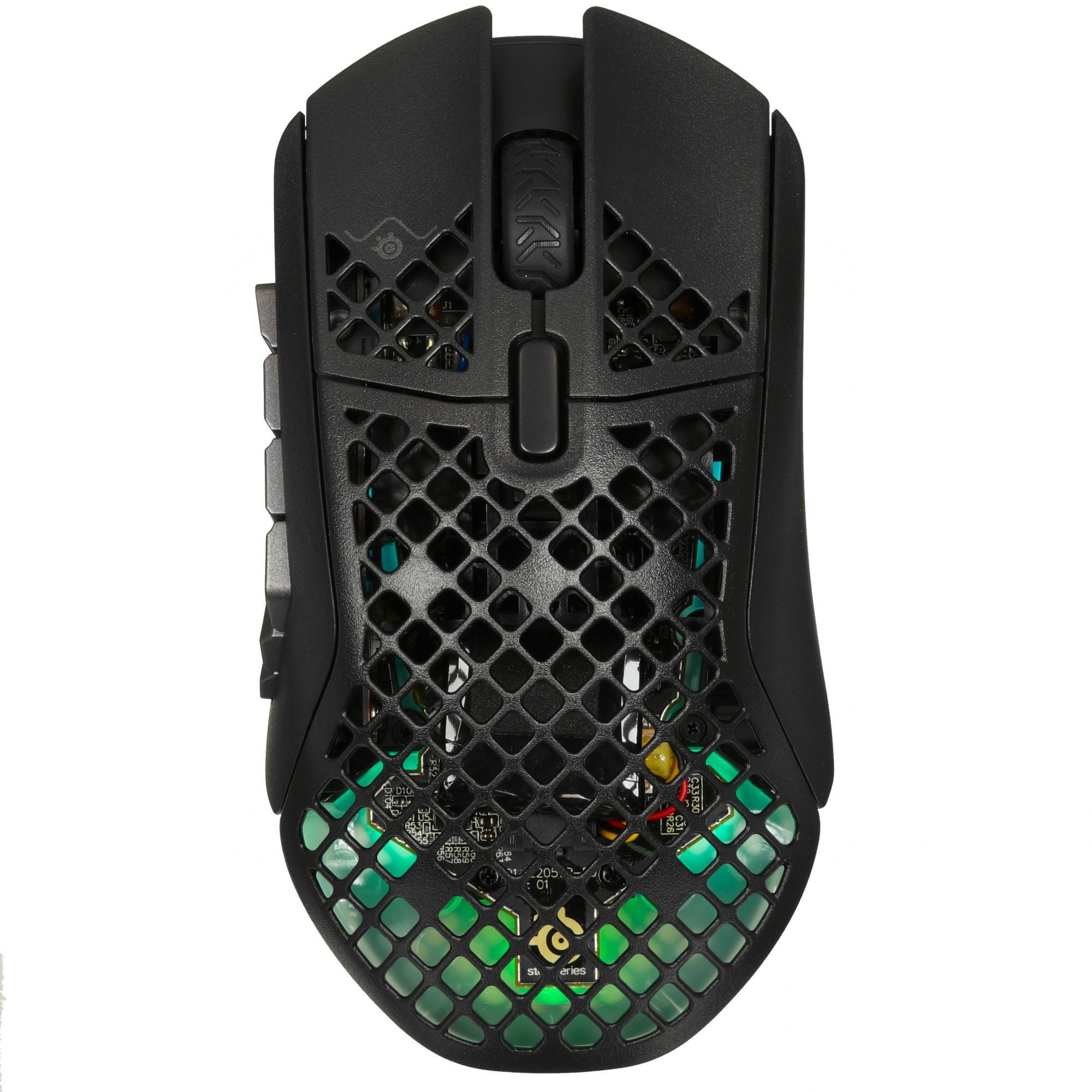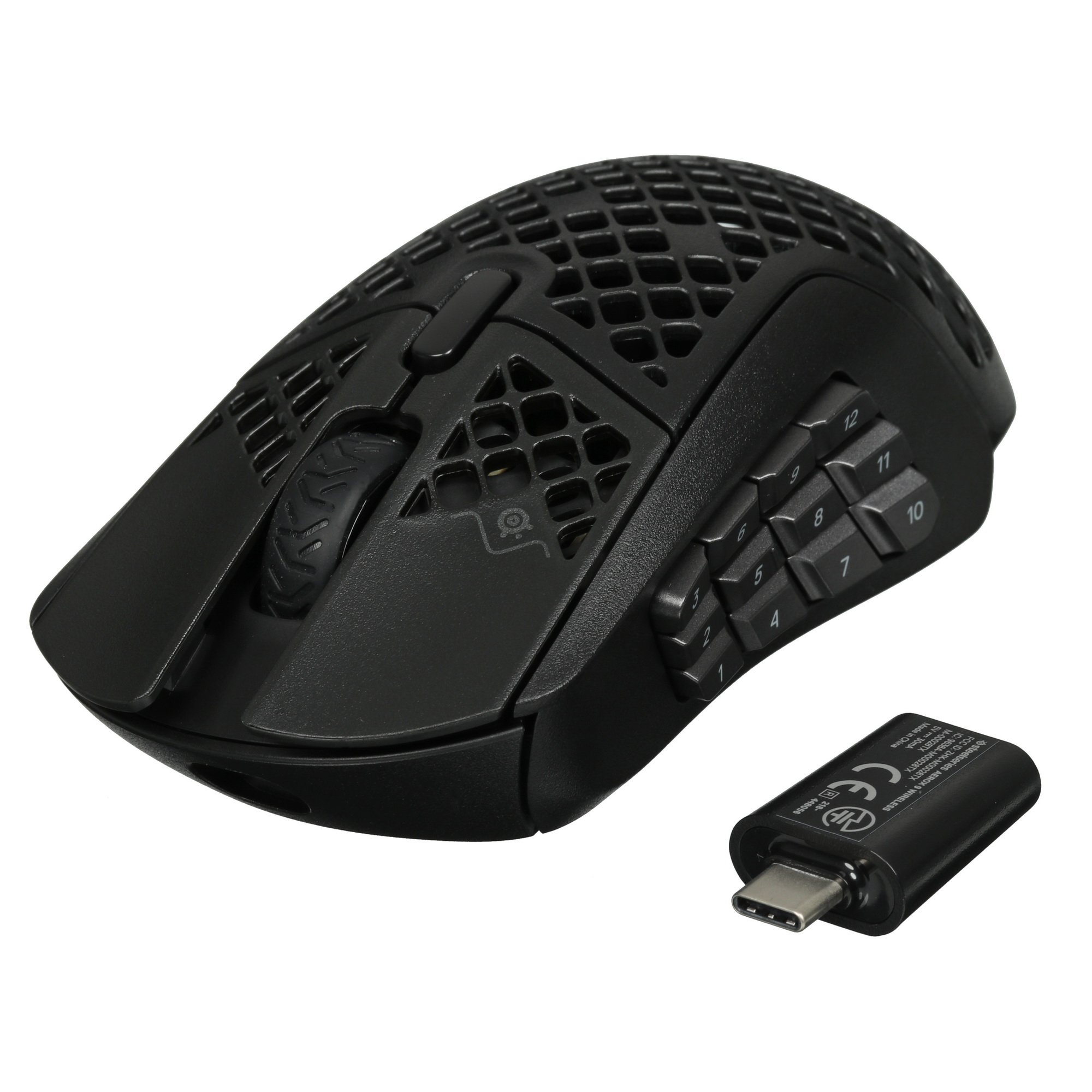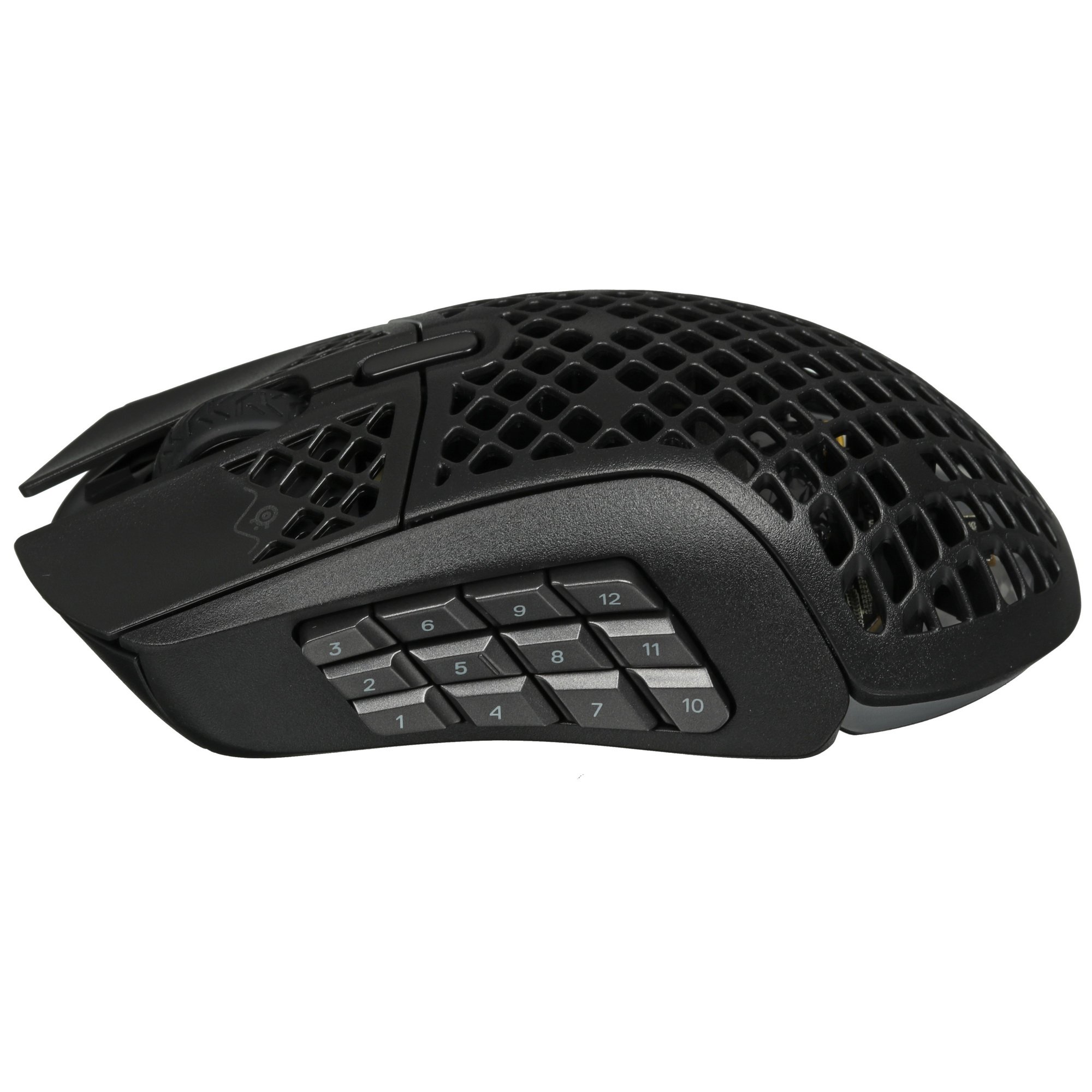 Мышь беспроводная SteelSeries Aerox 9 оборудована 18 программируемыми кнопками, с помощью которых можно получить быстрый доступ к игровым опциям. На поверхности черного пластикового корпуса находятся отверстия в виде пчелиных сот, которые обеспечивают непрерывную циркуляцию воздуха и не допускают проскальзывание ладони. Интегрированная RGB-подсветка делает манипулятор заметнее при недостаточном освещении.